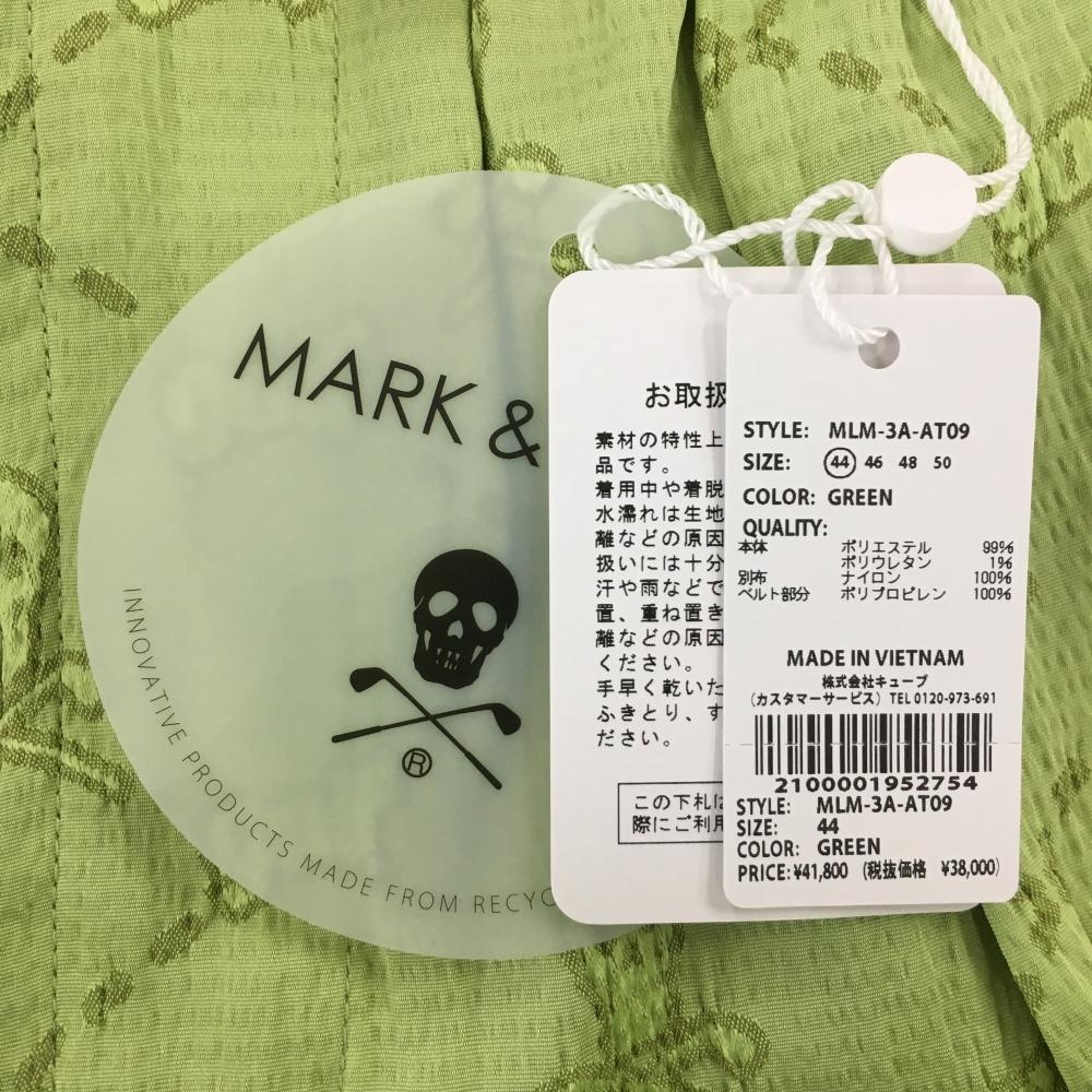 【新品】マークアンドロナ ハーフパンツ ライトグリーン×ネイビー スカル総柄 織生地 メンズ 44(S) ゴルフウェア 2023年モデル MARK&LONA