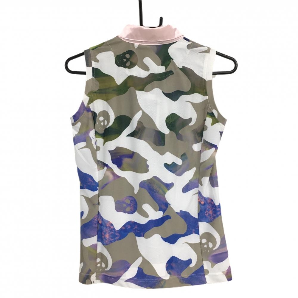 【新品】マークアンドロナ ノースリーブポロシャツ カーキ×ピンク カモフラ柄 レディース 38(M) ゴルフウェア 2022年モデル MARK&LONA