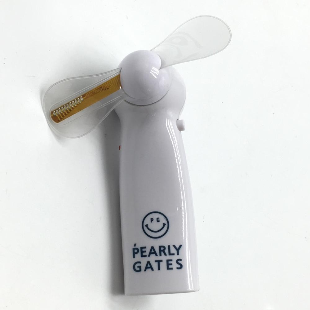 【美品】パーリーゲイツ ハンディファン 白 ロゴLED 扇風機 ニコちゃん スマイル 動作確認済 ゴルフ PEARLY GATES