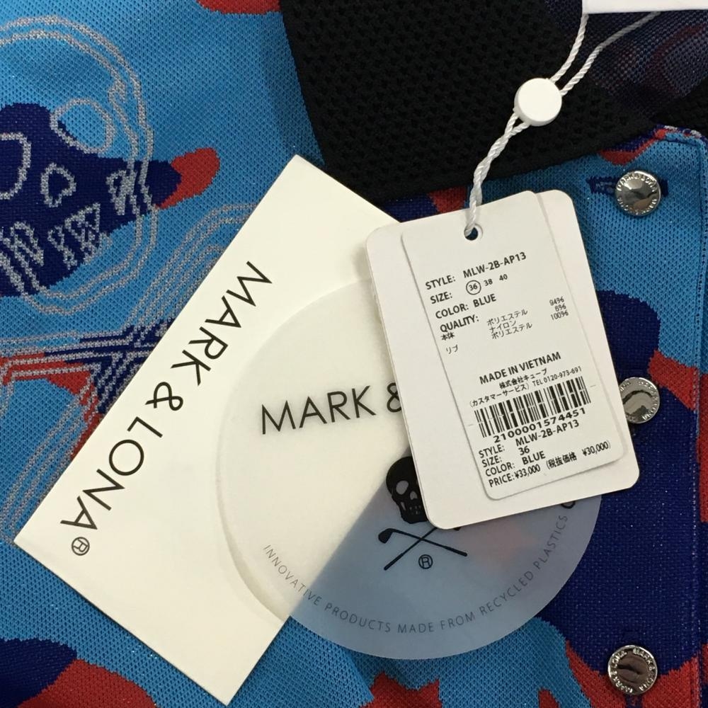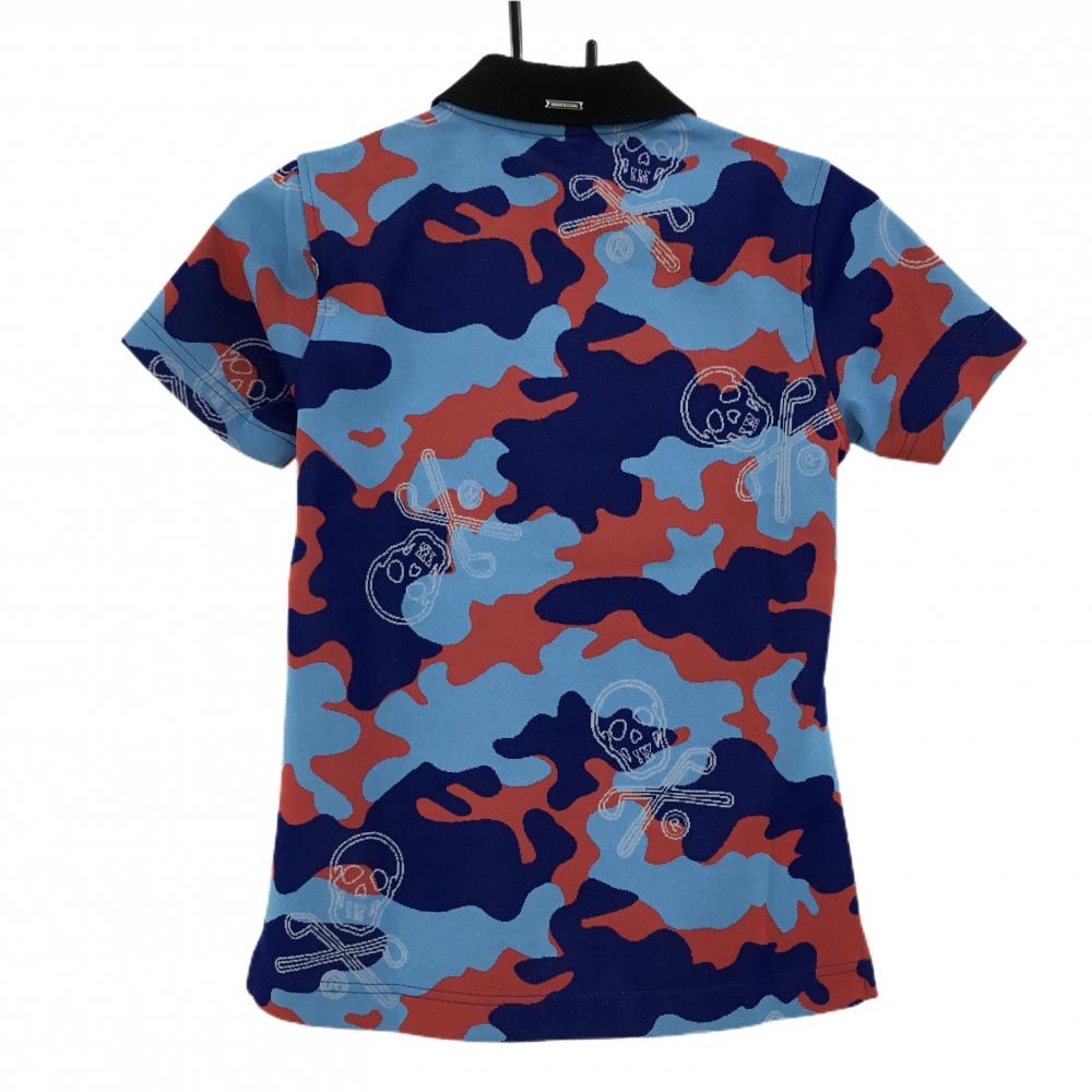 【新品】マークアンドロナ 半袖ポロシャツ ブルー×レッド カモフラ柄 迷彩 レディース 36(S) ゴルフウェア 2022年モデル MARK&LONA