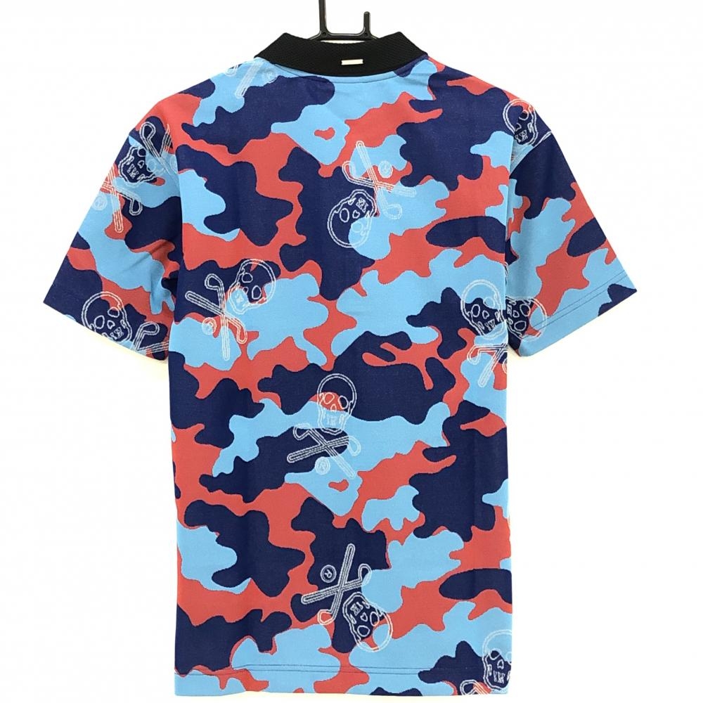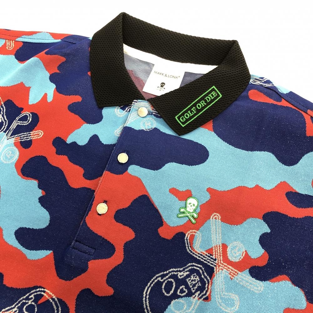 【新品】マークアンドロナ 半袖ポロシャツ ブルー×レッド メンズ 46(M) ゴルフウェア 2022年 木村拓哉着用モデル MARK&LONA