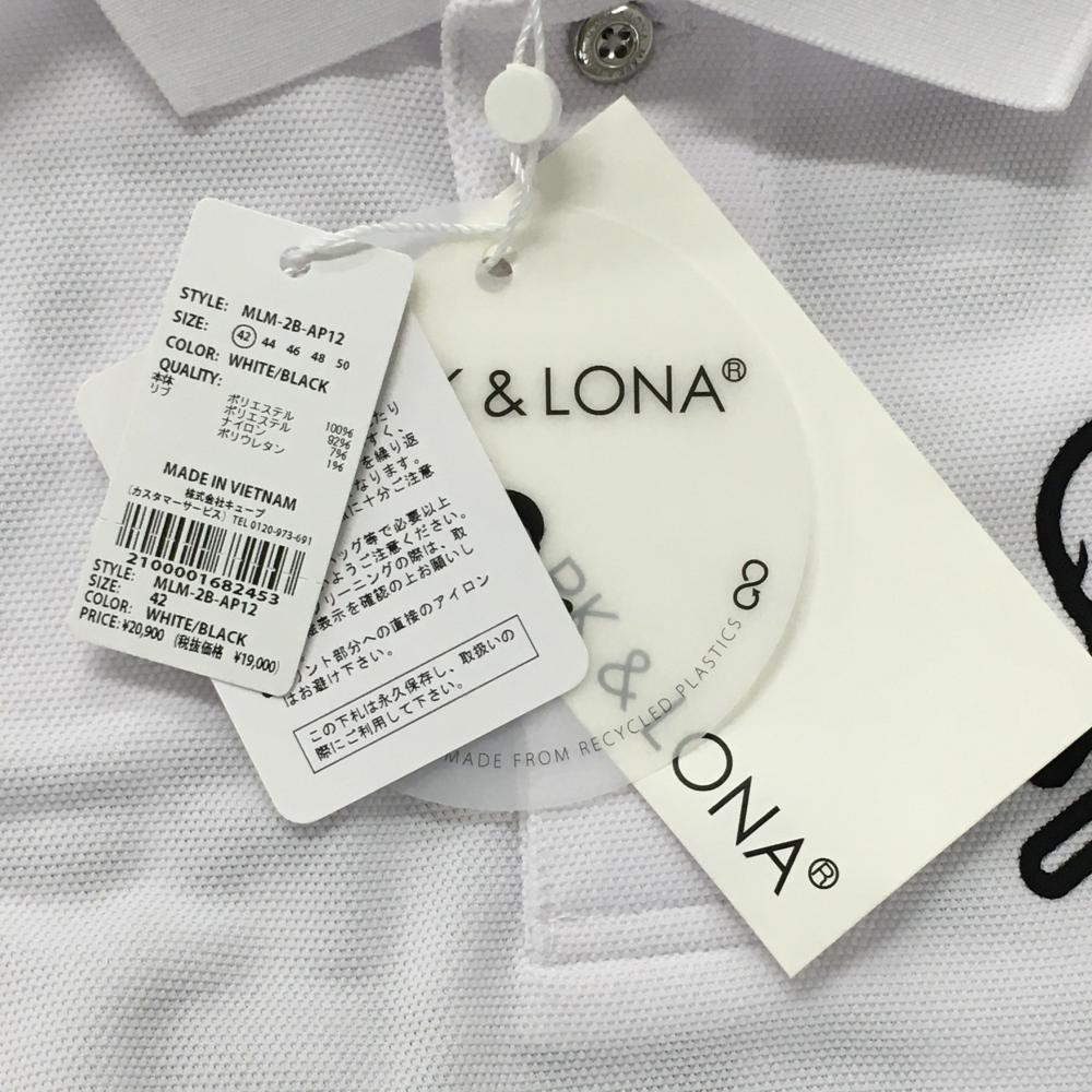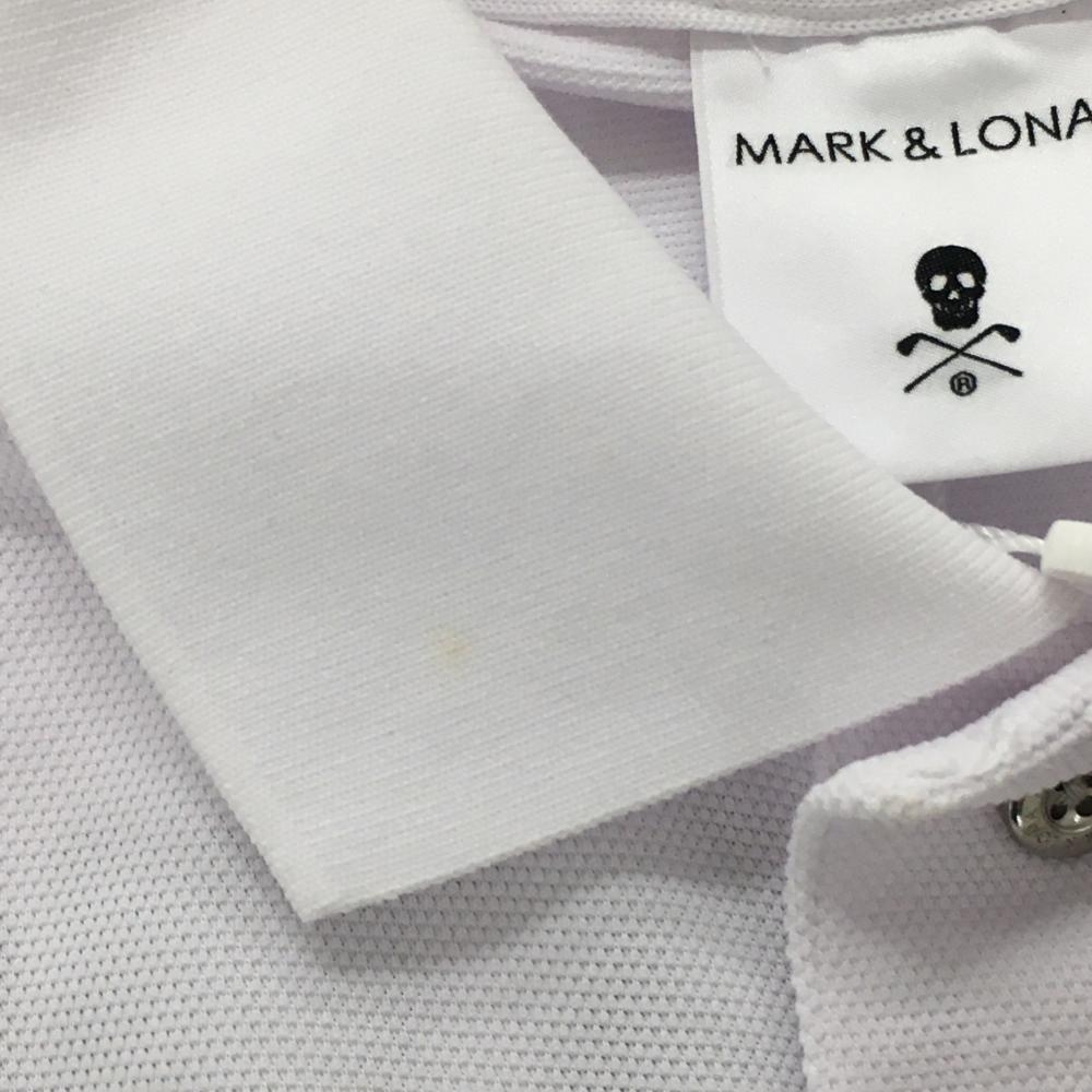 【新品】マークアンドロナ 半袖ポロシャツ 白×黒 スカルプリント 背面ロゴプリント メンズ 42(XS) ゴルフウェア 2022年モデル MARK&LONA