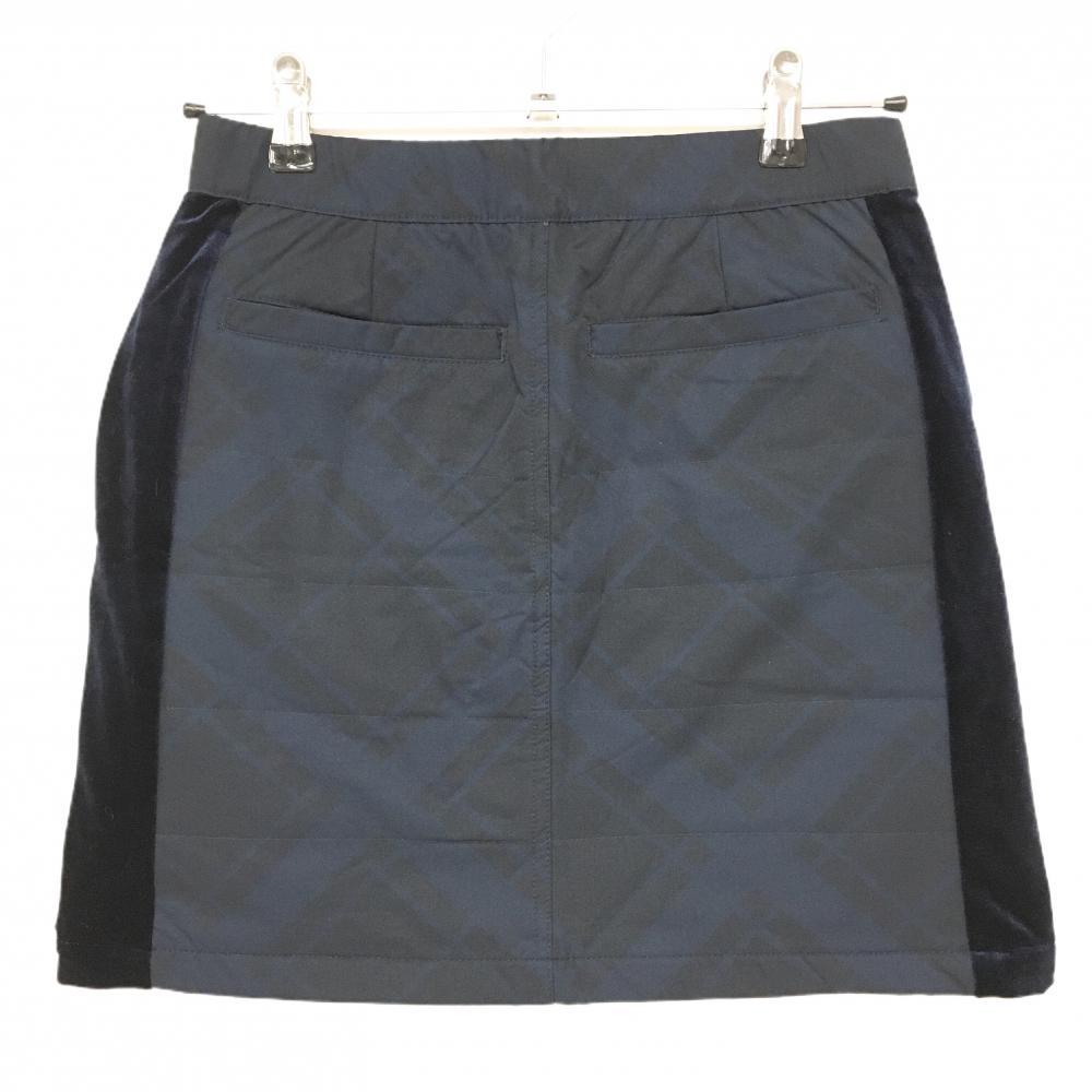 【超美品】フィドラ 中綿スカート ネイビー チェック サイドベロア フロントジップ レディース S ゴルフウェア FIDRA