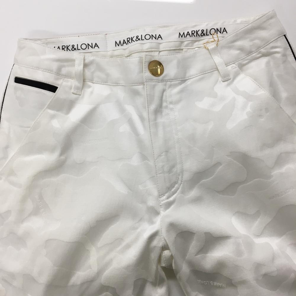 【新品】マークアンドロナ パンツ 白 スカル カモフラ織生地 迷彩 レディース 38(M) ゴルフウェア MARK&LONA