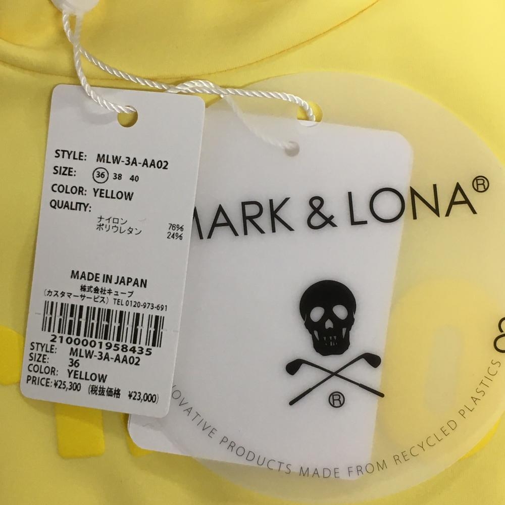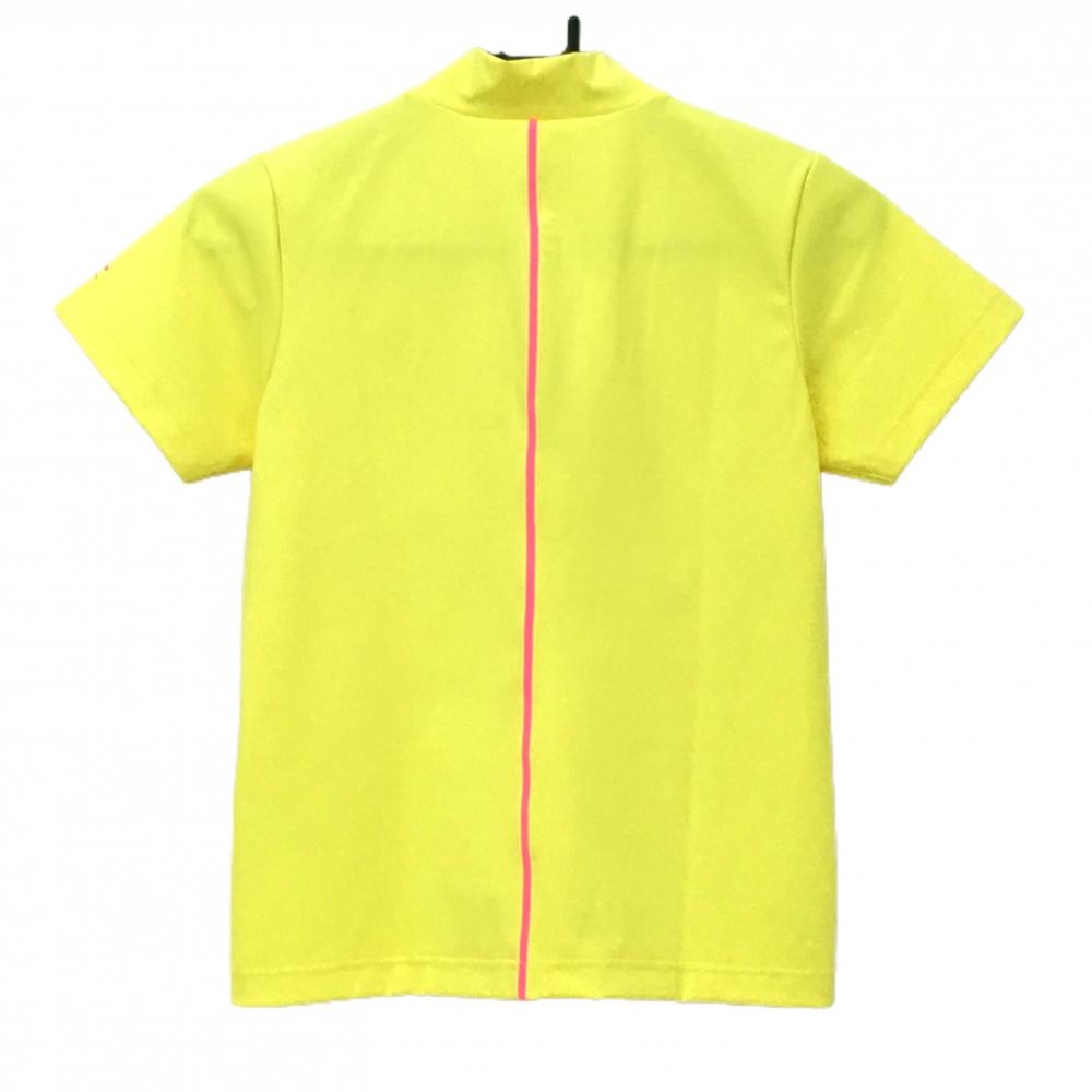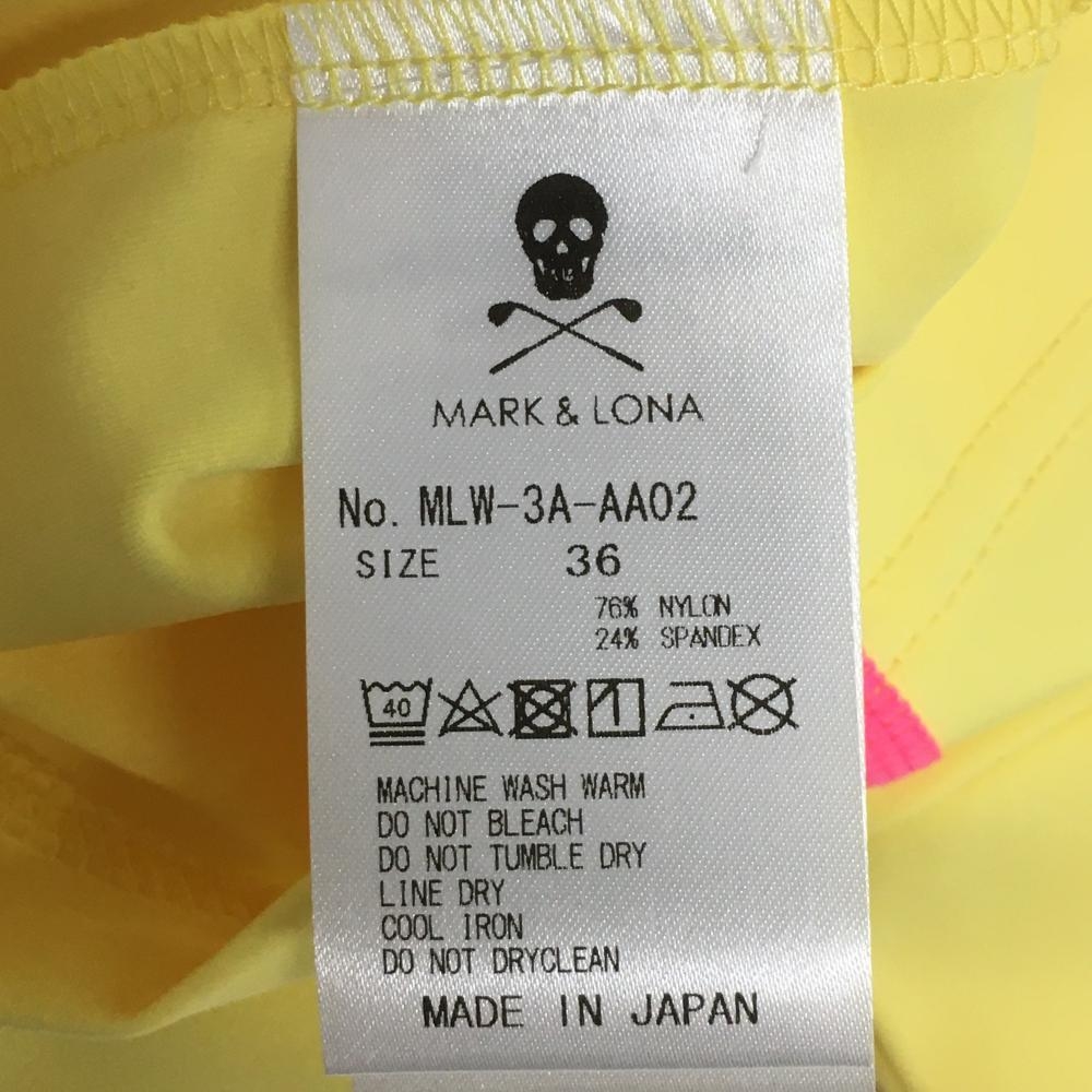 【新品】マークアンドロナ 半袖ハイネックシャツ イエロー×ピンク ロゴプリント レディース 36(S) ゴルフウェア 2023年モデル MARK&LONA