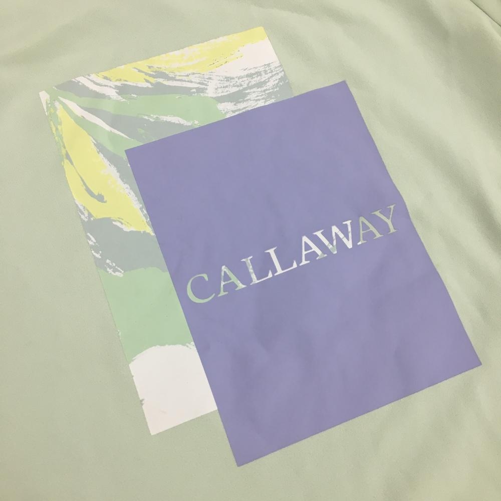 【超美品】キャロウェイ 長袖Tシャツ ライトグリーン×パープル フロントプリント 裏起毛 レディース LL ゴルフウェア Callaway
