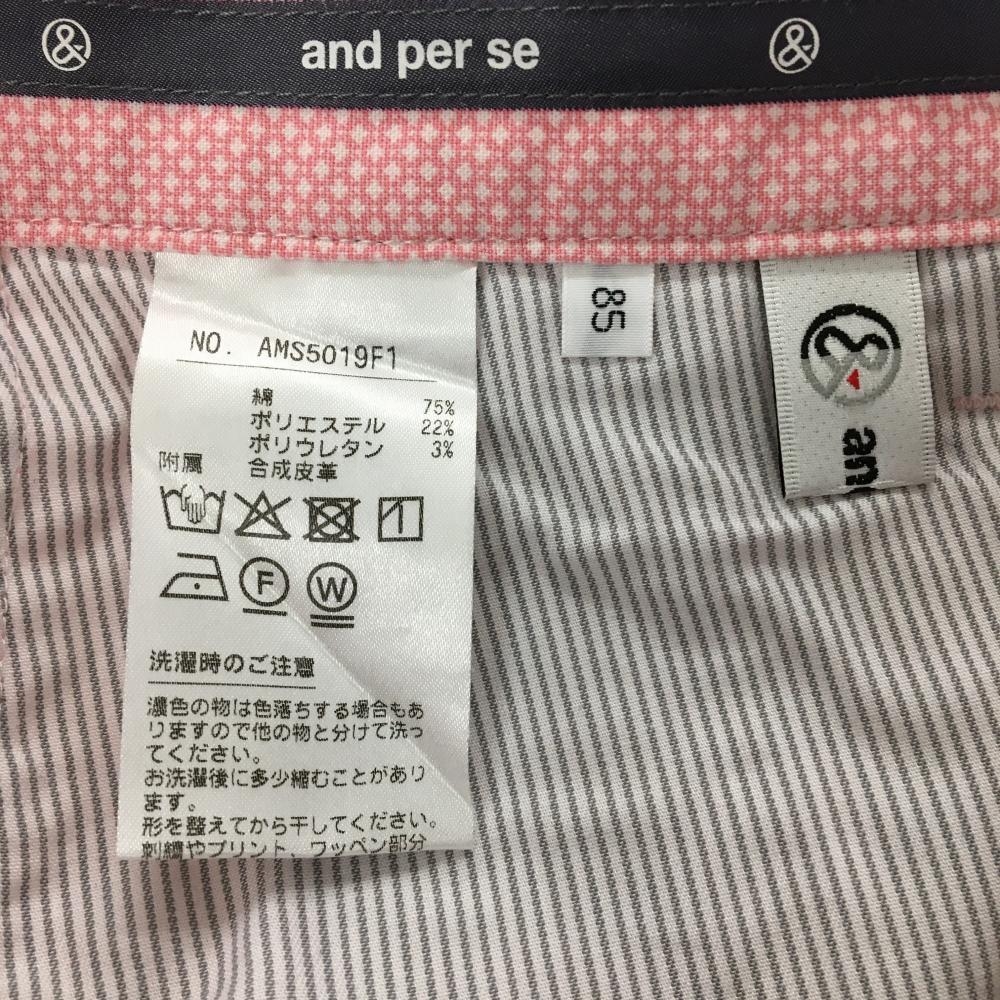 アンパスィ パンツ ライトピンク×白 総柄織生地 ストレッチ メンズ 85 ゴルフウェア and per se