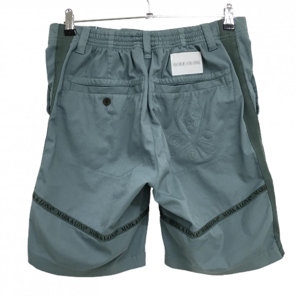 【新品】マークアンドロナ ハーフパンツ ブルーグレー 織生地ロゴテープ メンズ 46(M) ゴルフウェア 2022年 木村拓哉着用モデル MARK&LONA