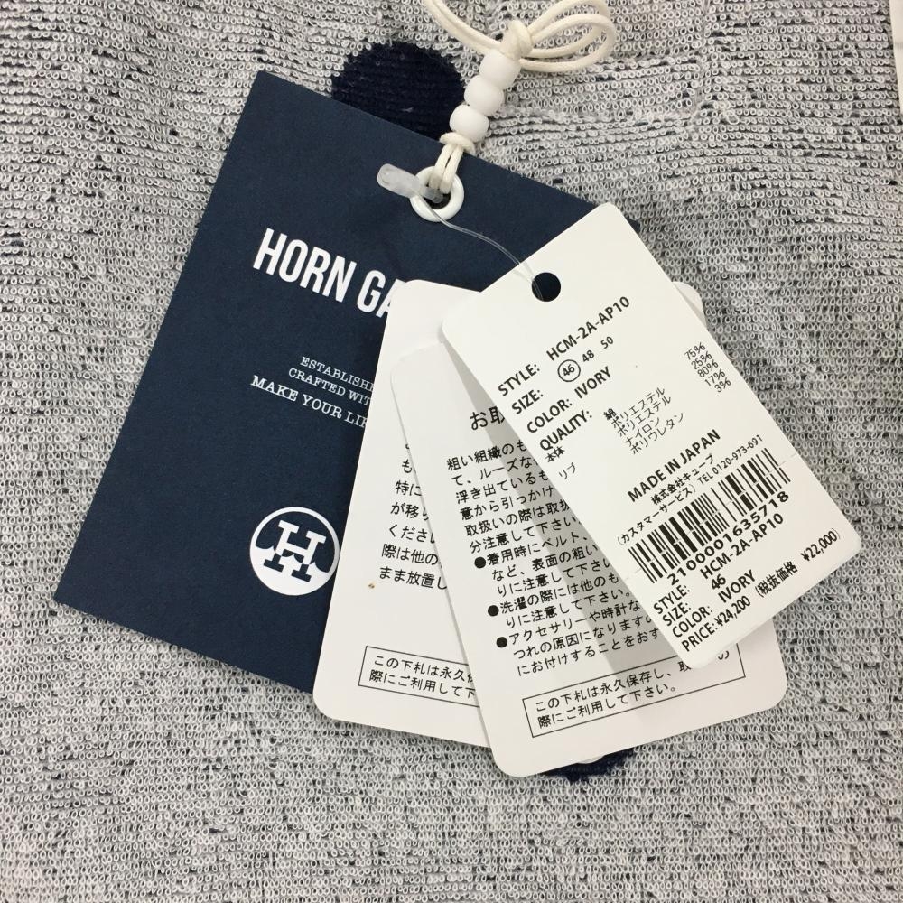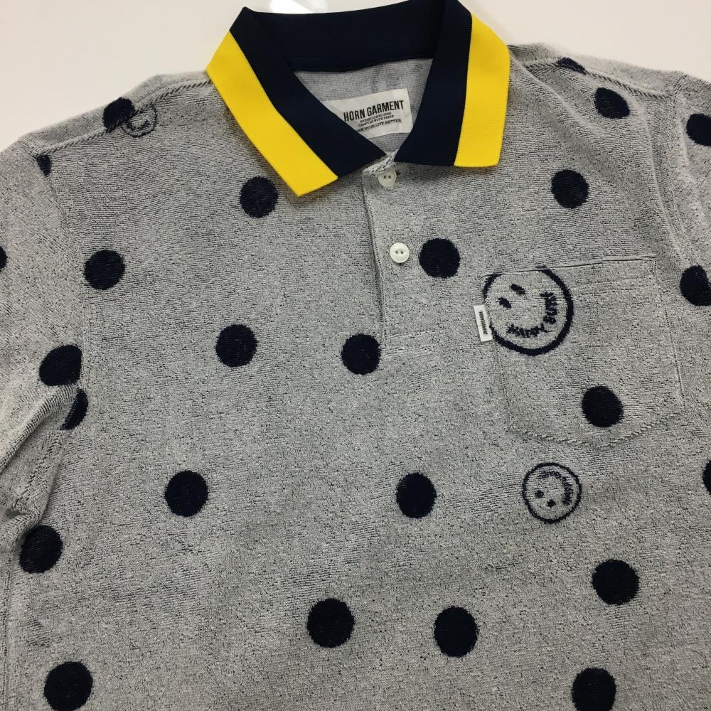 【新品】ホーンガーメント 半袖ポロシャツ 白×ネイビー ドット ニコちゃん メンズ 46(M) ゴルフウェア 2022年モデル MARK&LONA