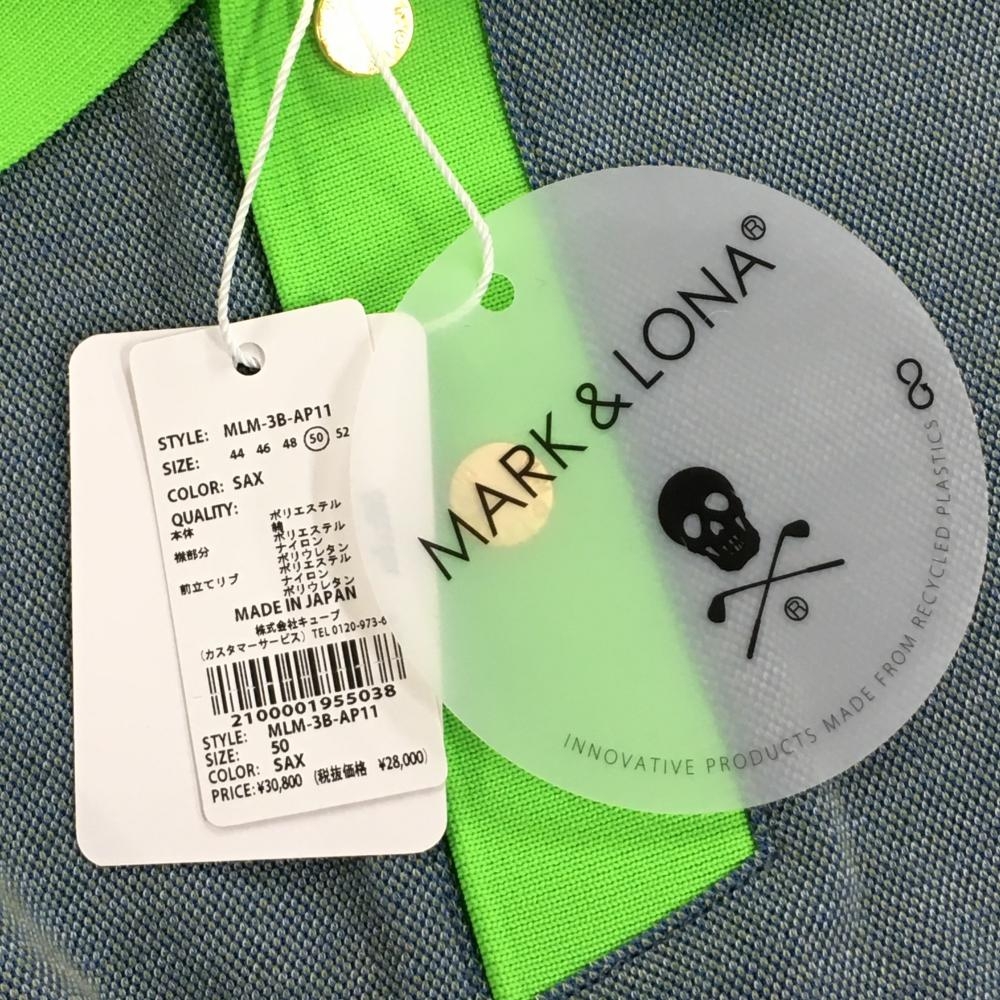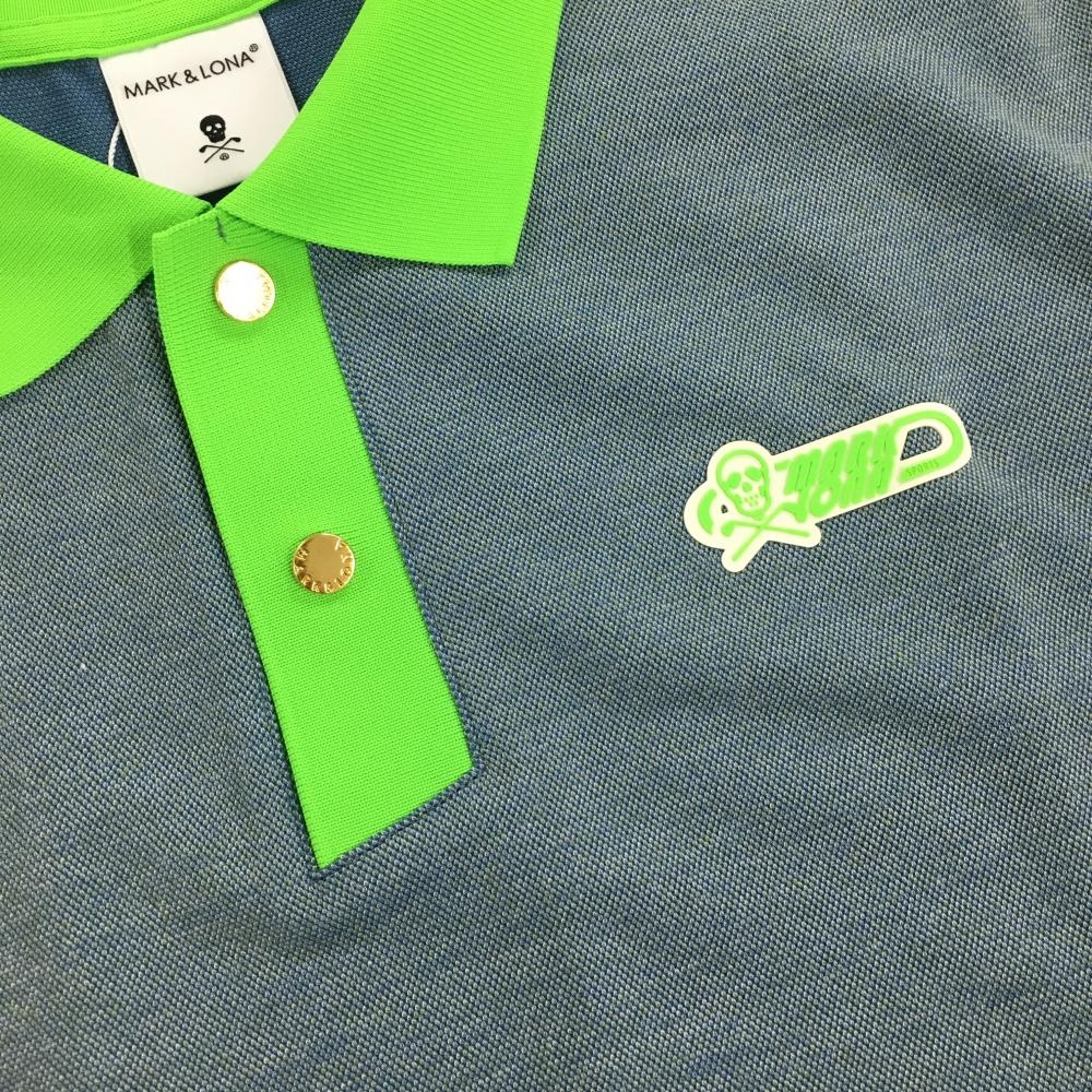 【新品】マークアンドロナ 長袖ポロシャツ ブルー系×ライトグリーン メンズ 50(XL) ゴルフウェア 2023年木村拓哉着用モデル MARK&LONA