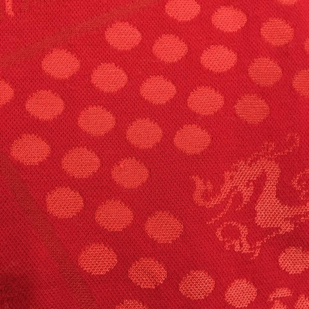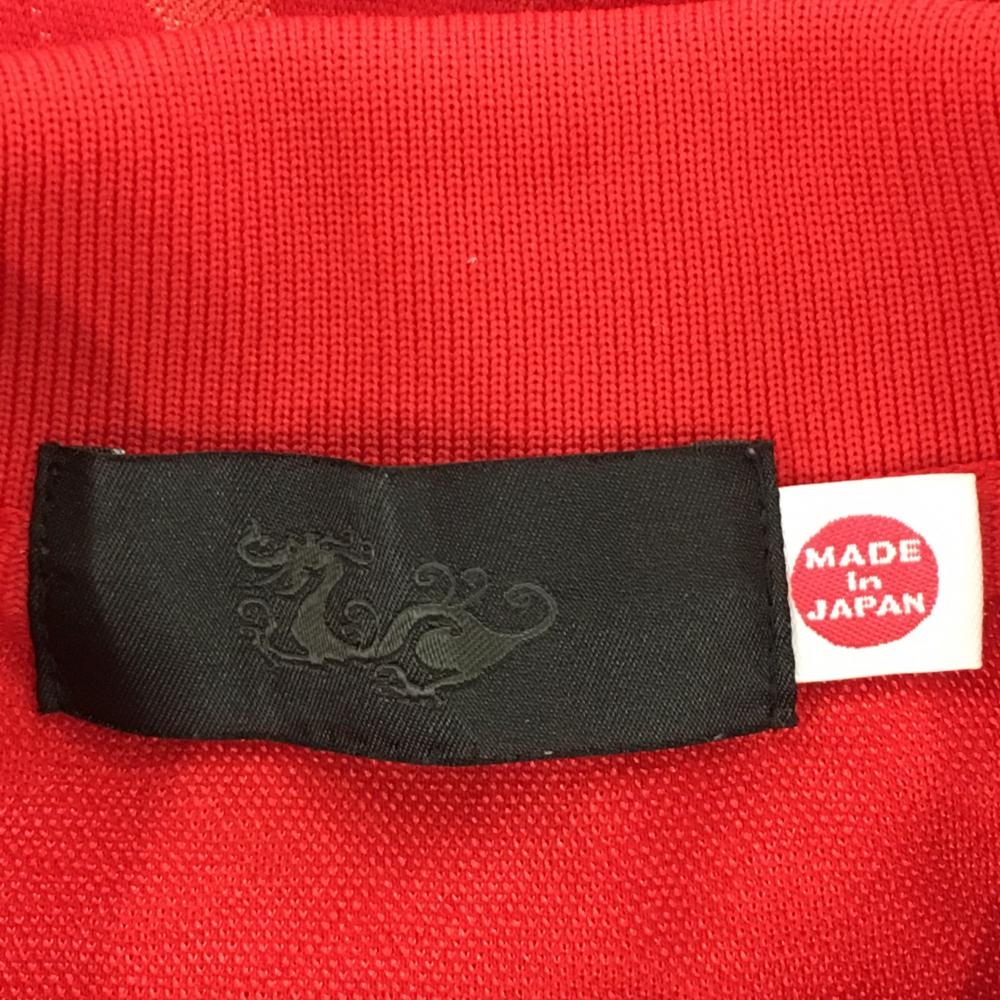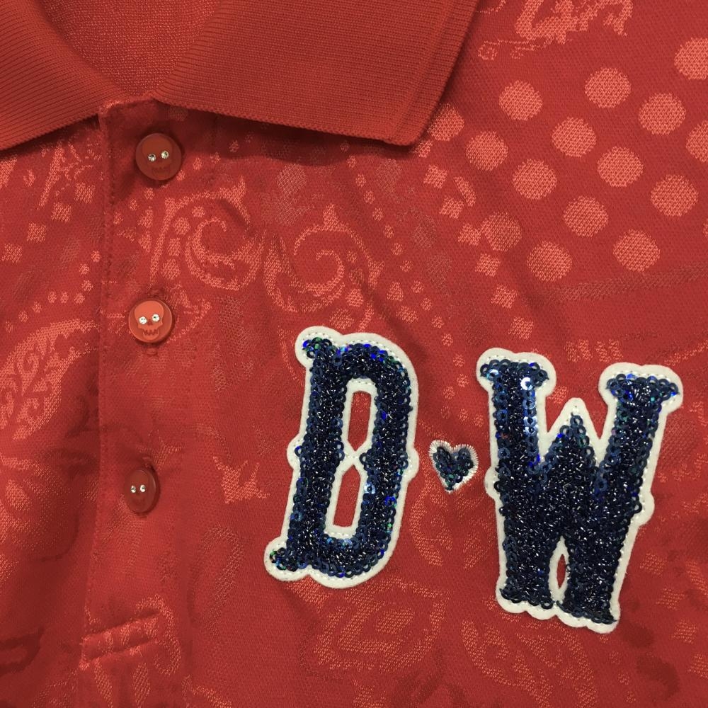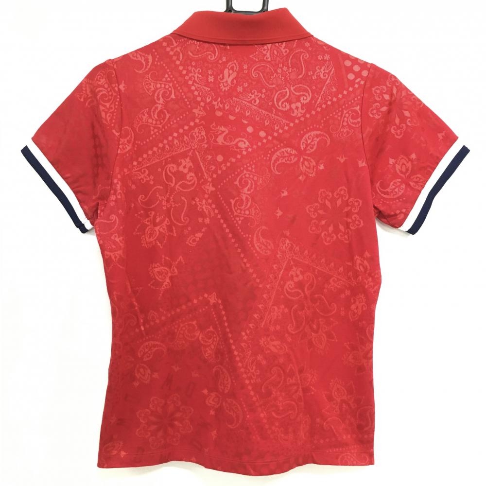 【超美品】ダンスウィズドラゴン 半袖ポロシャツ レッド 地模様総柄 袖口ネイビー レディース 2(M) ゴルフウェア Dance With Dragon