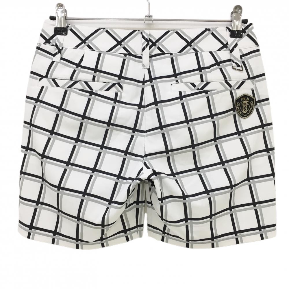 フィラゴルフ ショートパンツ 白×黒 格子柄 ポケット口・裾汚れ レディース M ゴルフウェア FILA GOLF