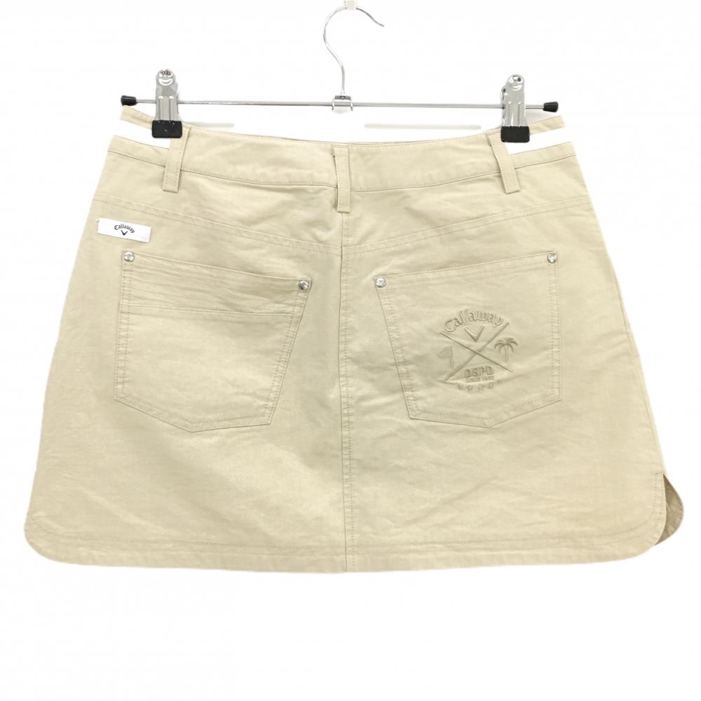 【美品】キャロウェイ スカート ベージュ×白 フロントボタン ウエストライン バックロゴ レディース S ゴルフウェア Callaway