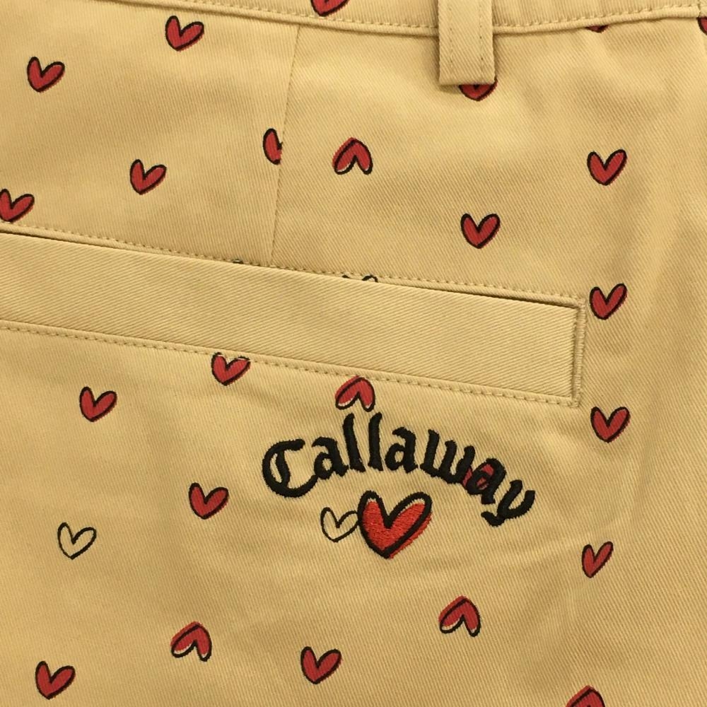 【超美品】キャロウェイ スカート ライトブラウン×レッド ハート柄 ストレッチ レディース L ゴルフウェア 2024年モデル Callaway
