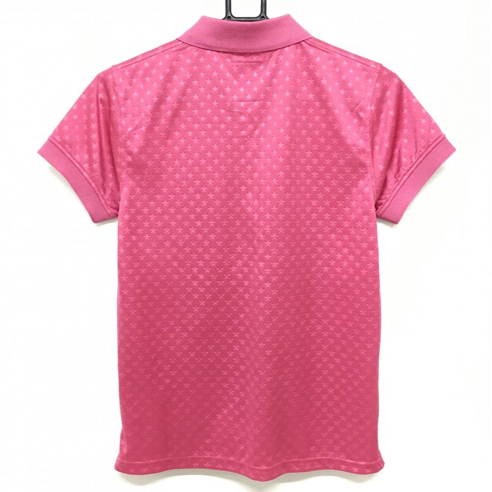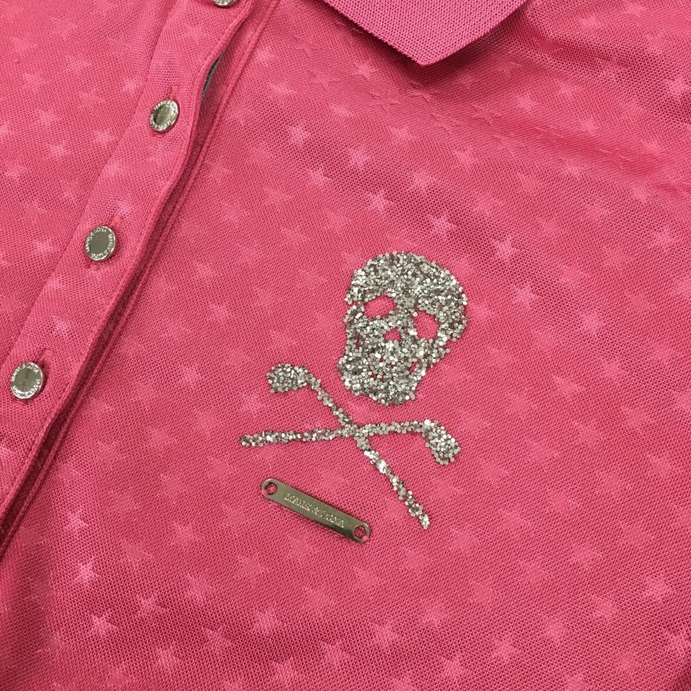 【超美品】マークアンドロナ 半袖ポロシャツ ピンク 星柄地模様 スカル レディース M ゴルフウェア MARK&LONA