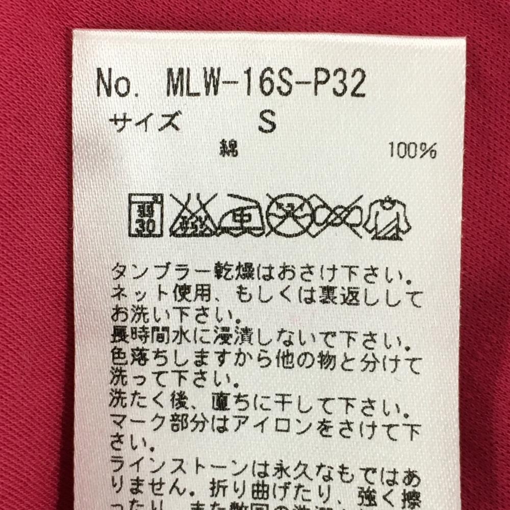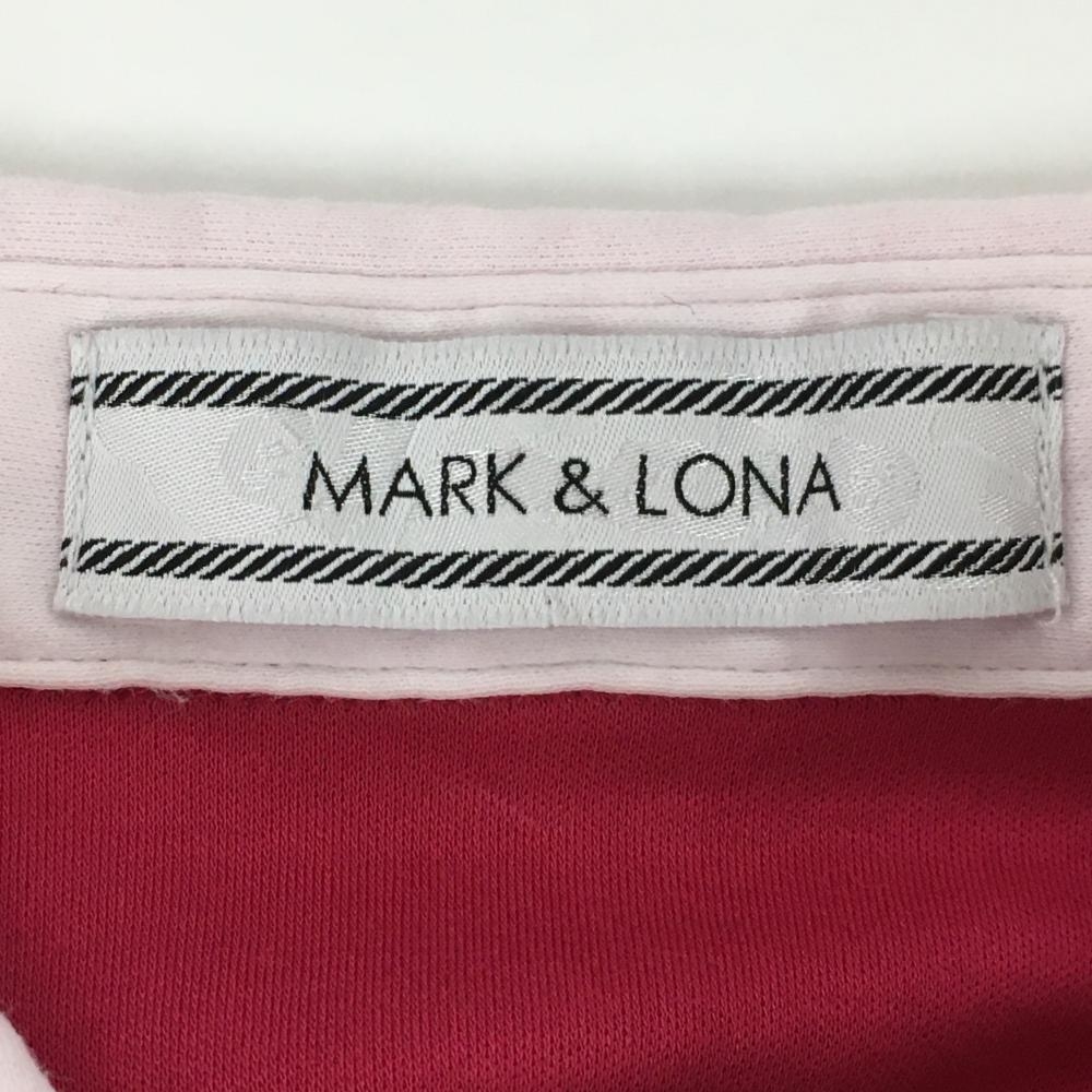 【美品】マークアンドロナ 半袖ポロシャツ ピンク×白 背面ビッグスカル ラインストーン レディース S ゴルフウェア MARK&LONA