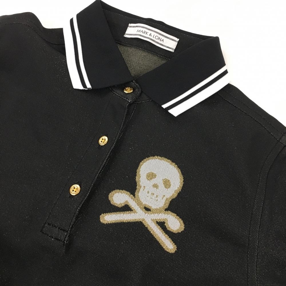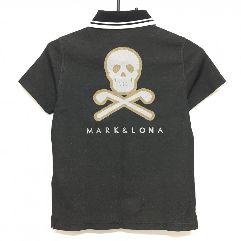 【超美品】マークアンドロナ 半袖ポロシャツ 黒×ゴールド 背面ビッグスカル ラメ レディース S ゴルフウェア MARK&LONA