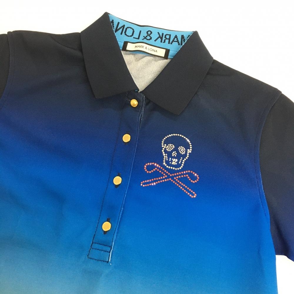 【超美品】マークアンドロナ 半袖ポロシャツ ネイビー×ライトブルー グラデーション レディース 36(S) ゴルフウェア MARK&LONA