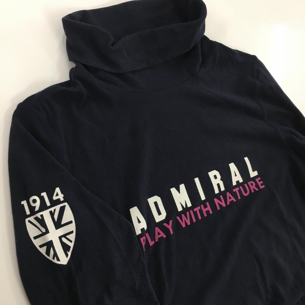 【美品】アドミラル 長袖ハイネックシャツ ネイビー×白 表微起毛 アクリル混 レディース M ゴルフウェア Admiral