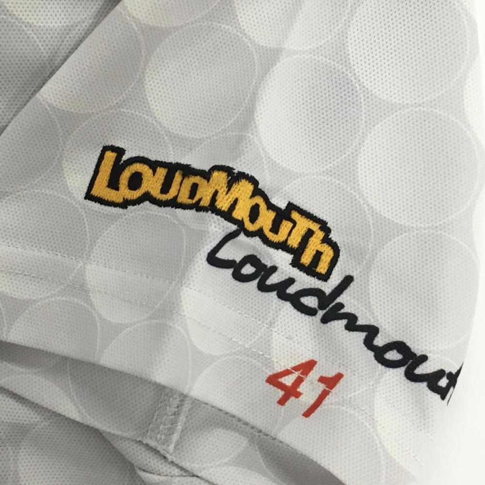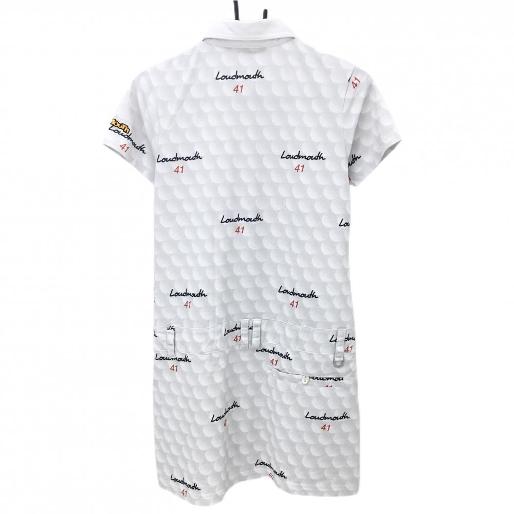 【超美品】ラウドマウス 半袖ポロワンピース ライトグレー ビッグゴルフボール柄 スカート部裏地付 レディース M ゴルフウェア LOUDMOUTH