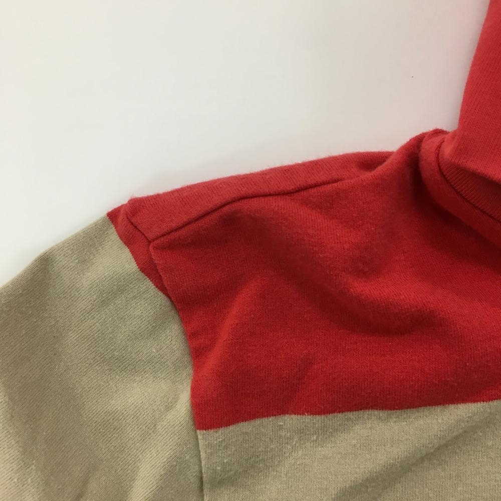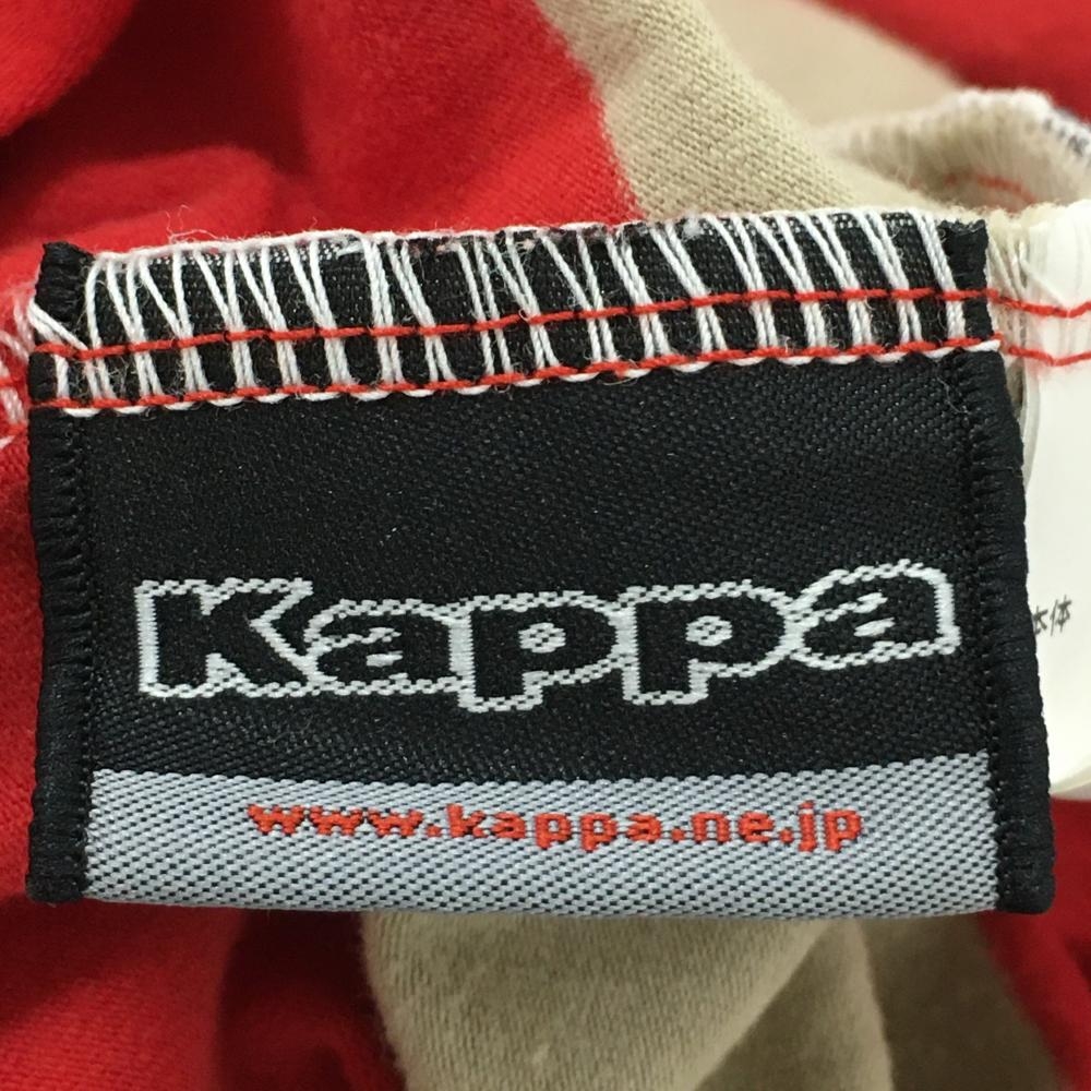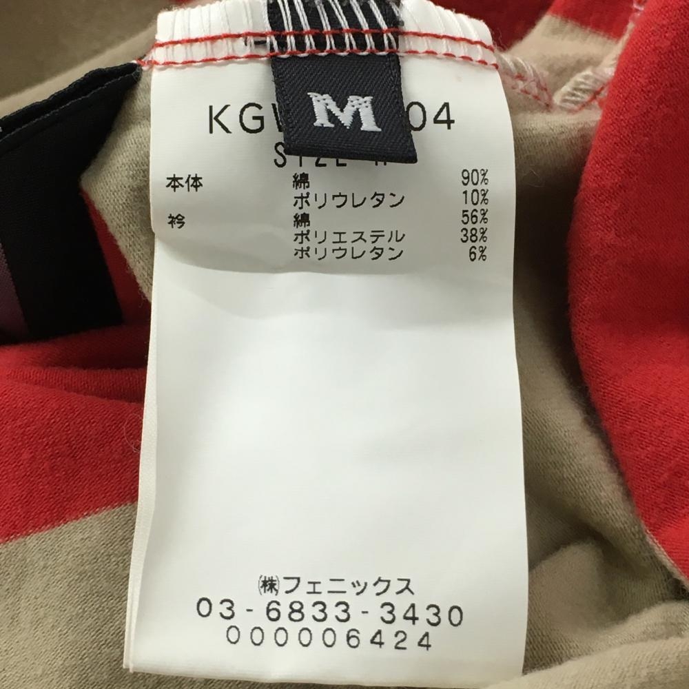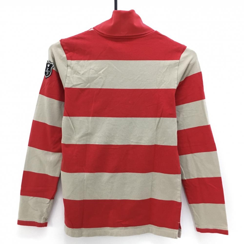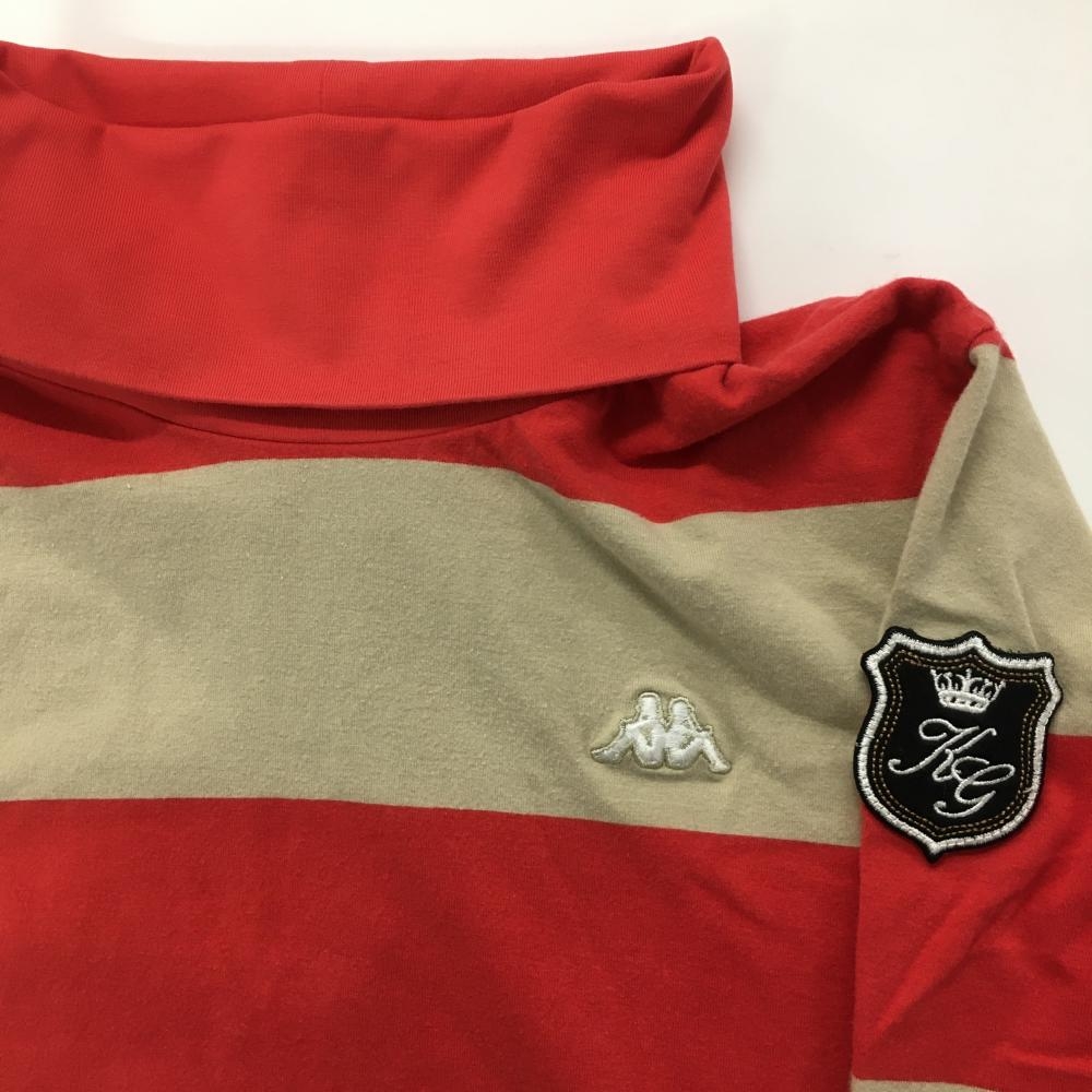 【美品】カッパ 長袖タートルネックシャツ レッド×ベージュ ボーダー 微起毛 ストレッチ レディース M ゴルフウェア Kappa