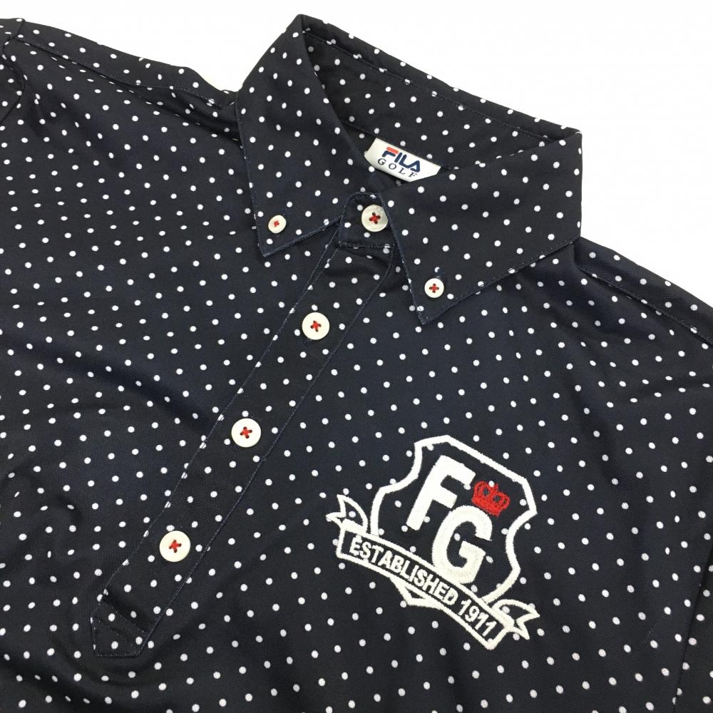 【超美品】フィラゴルフ 半袖ポロシャツ ネイビー×白 ドット ボタンダウン メンズ M ゴルフウェア FILA GOLF