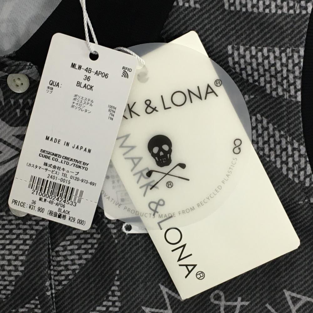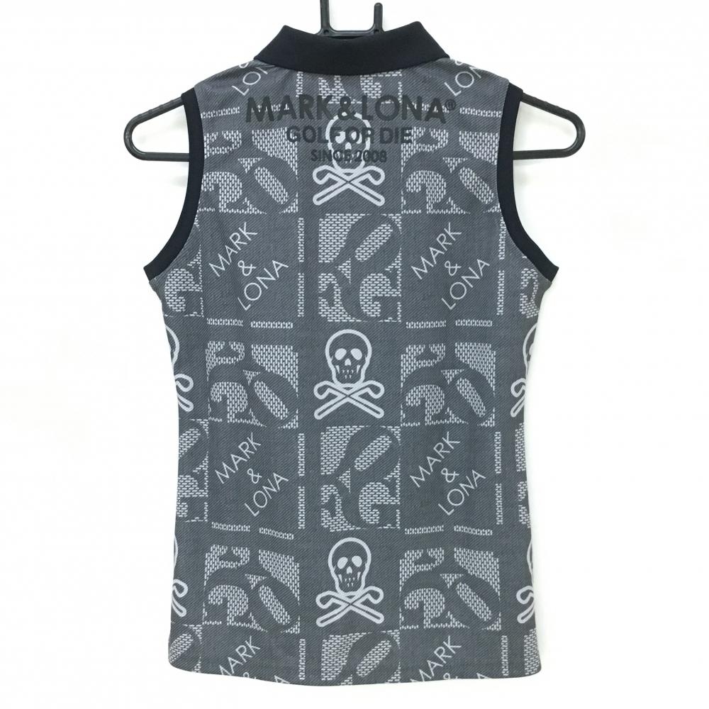 【新品】マークアンドロナ ノースリーブポロシャツ グレー×黒 総柄 スカル レディース 36(S) ゴルフウェア 2024年モデル MARK&LONA