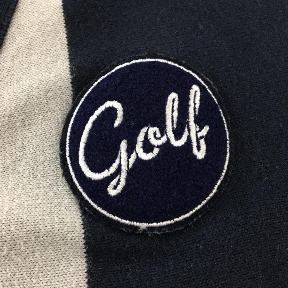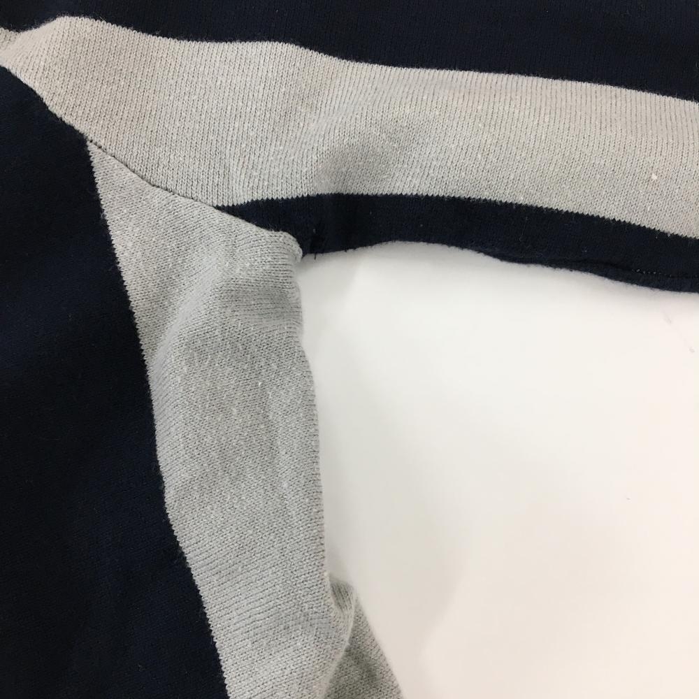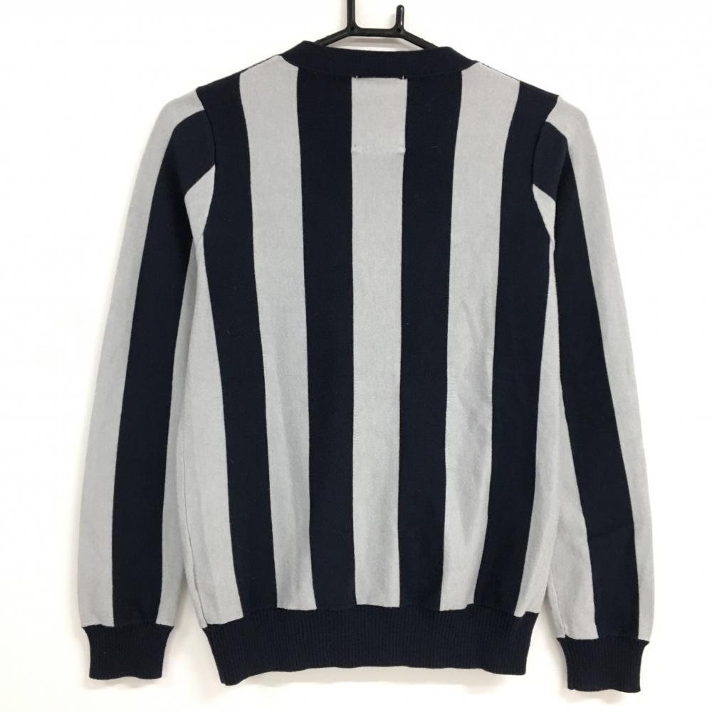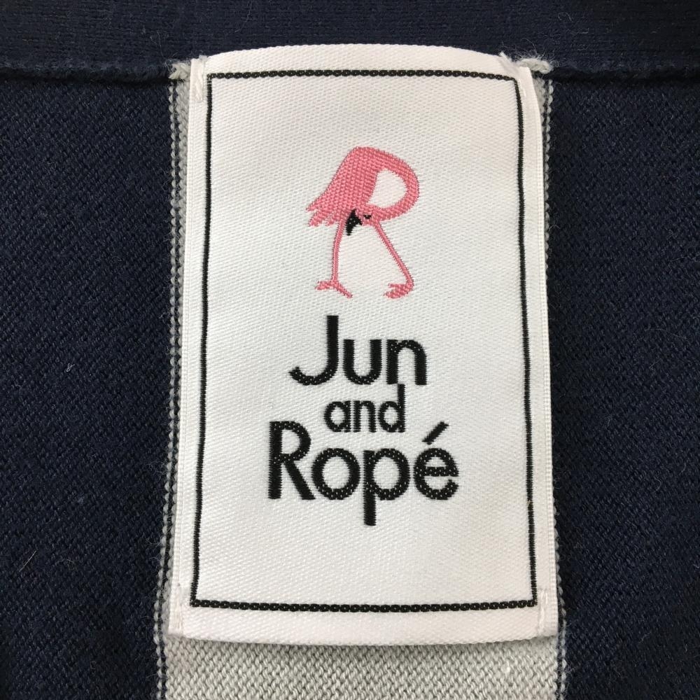 【美品】ジュンアンドロペ ニットカーディガン ネイビー×グレー ストライプ コットン混 レディース M ゴルフウェア JUN&ROPE