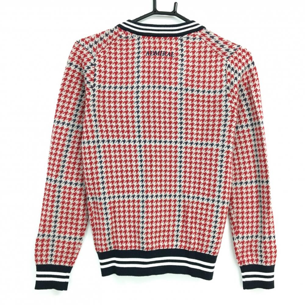 アドミラル セーター レッド×ネイビー 千鳥格子 Vネック ニット ウール混 レディース S ゴルフウェア Admiral
