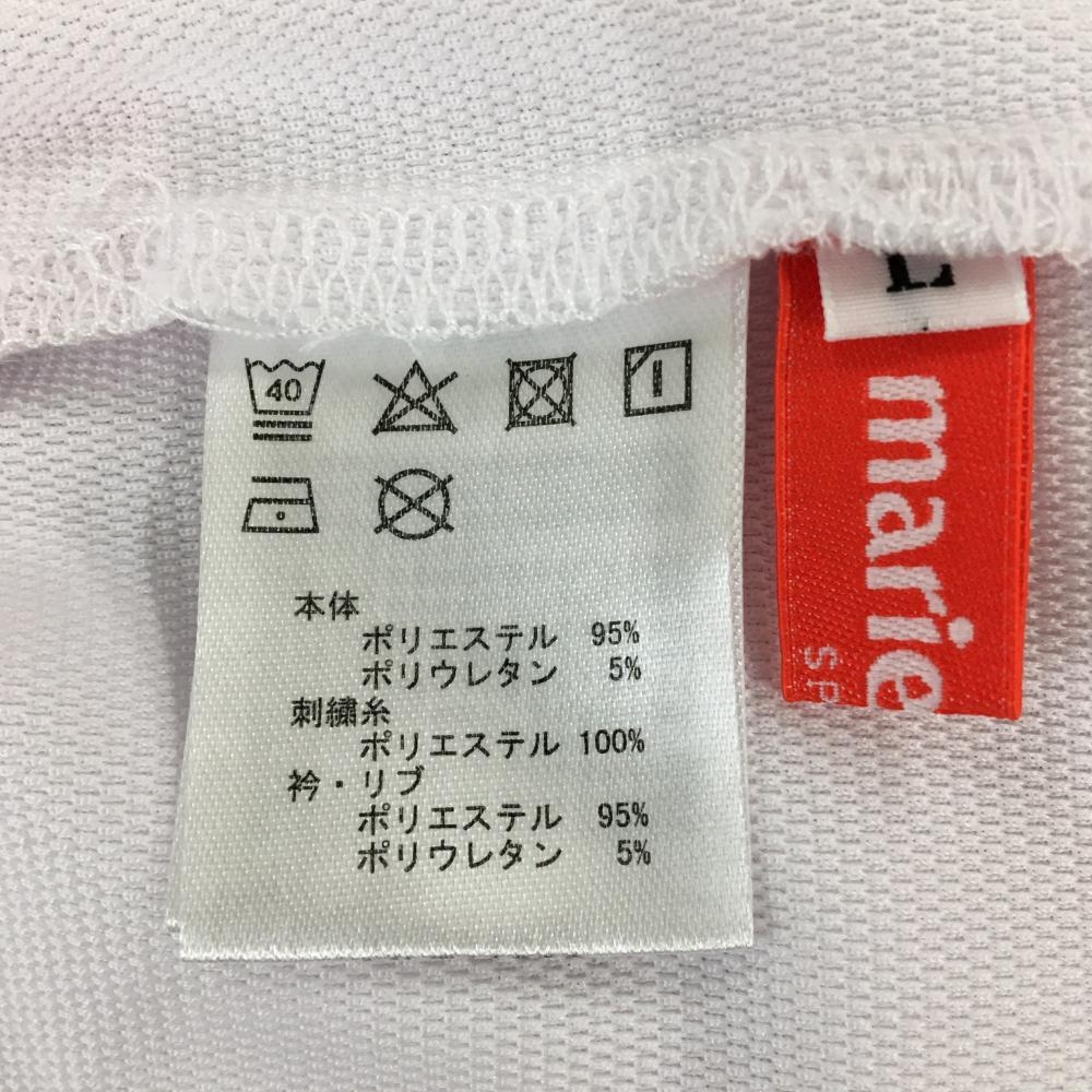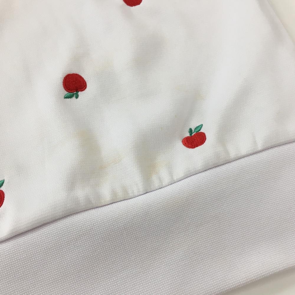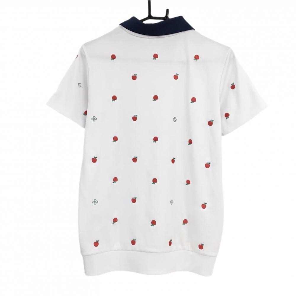 マリクレールスポール 襟付き半袖シャツ 白×ネイビー リンゴ柄 襟着脱可 レディース L ゴルフウェア marie claire