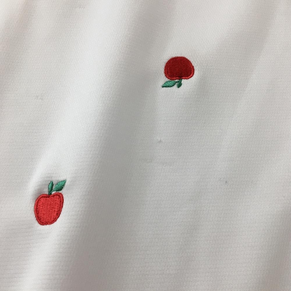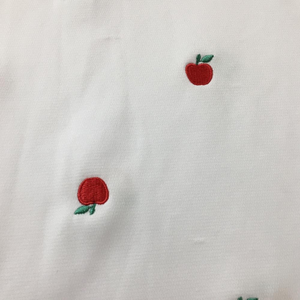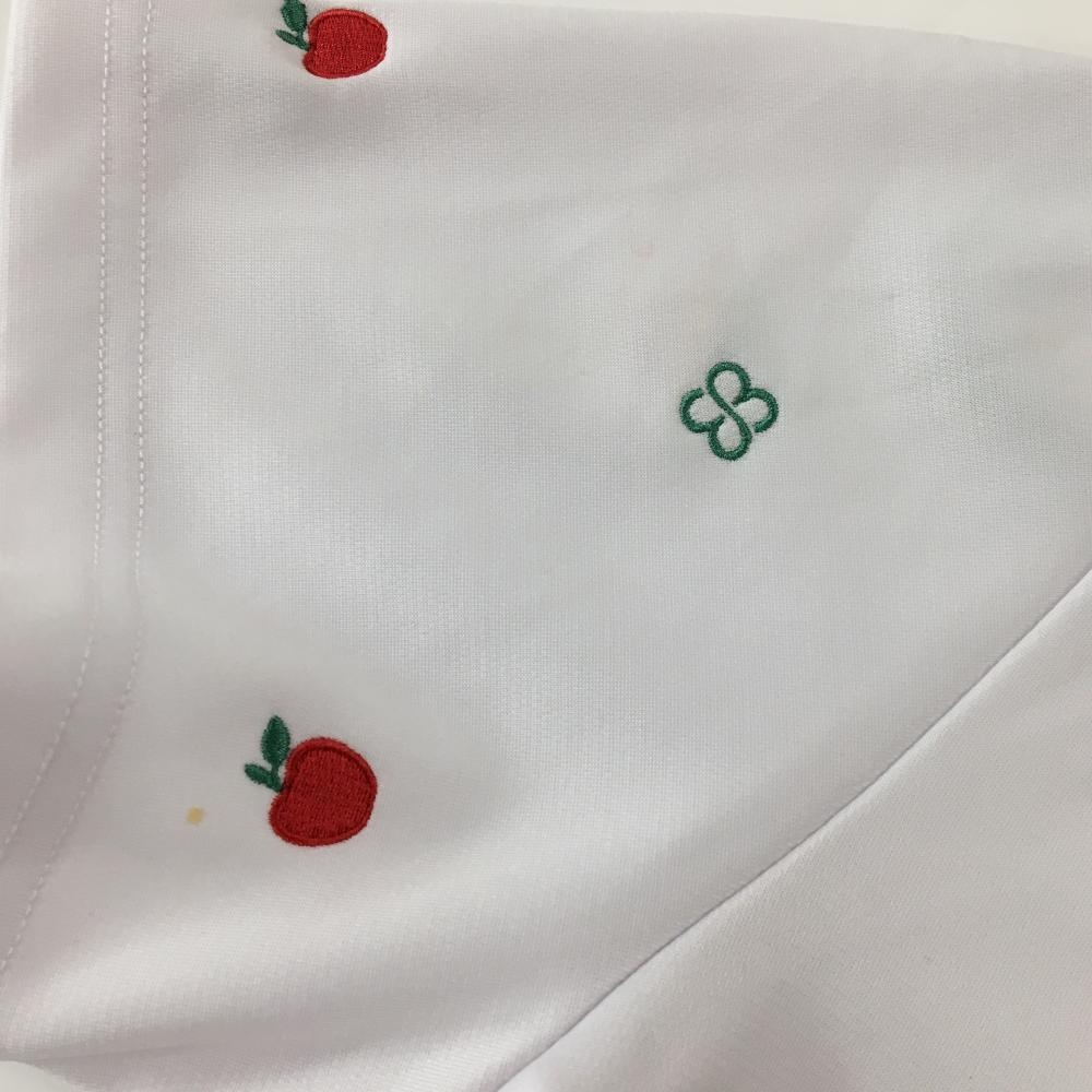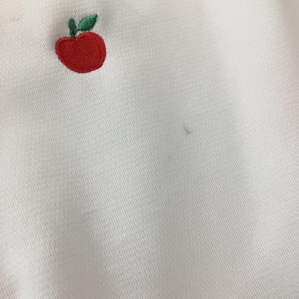 マリクレールスポール 襟付き半袖シャツ 白×ネイビー リンゴ柄 襟着脱可 レディース L ゴルフウェア marie claire