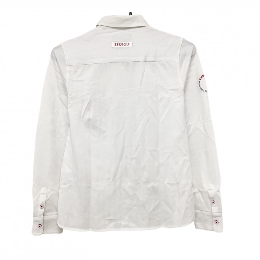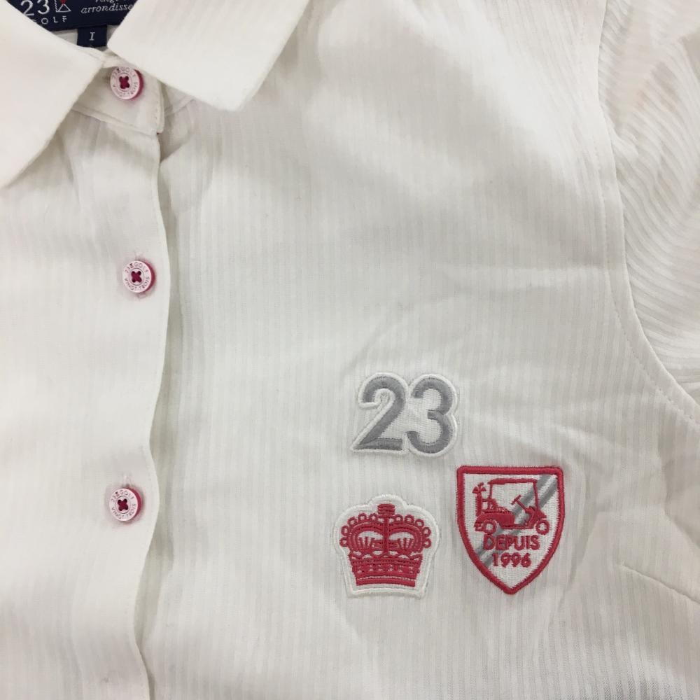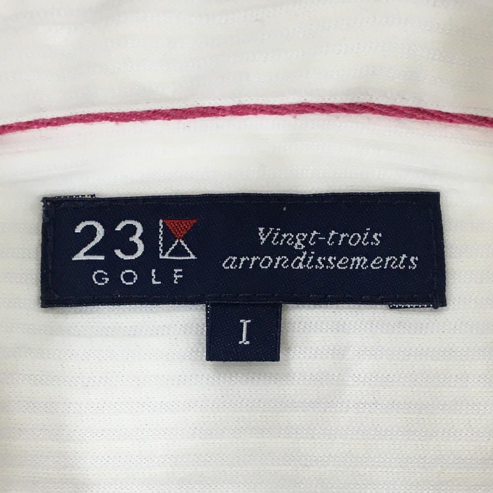 【美品】23区ゴルフ 長袖シャツ 白×ピンク ストライプ織生地 レディース I(M) ゴルフウェア 23区