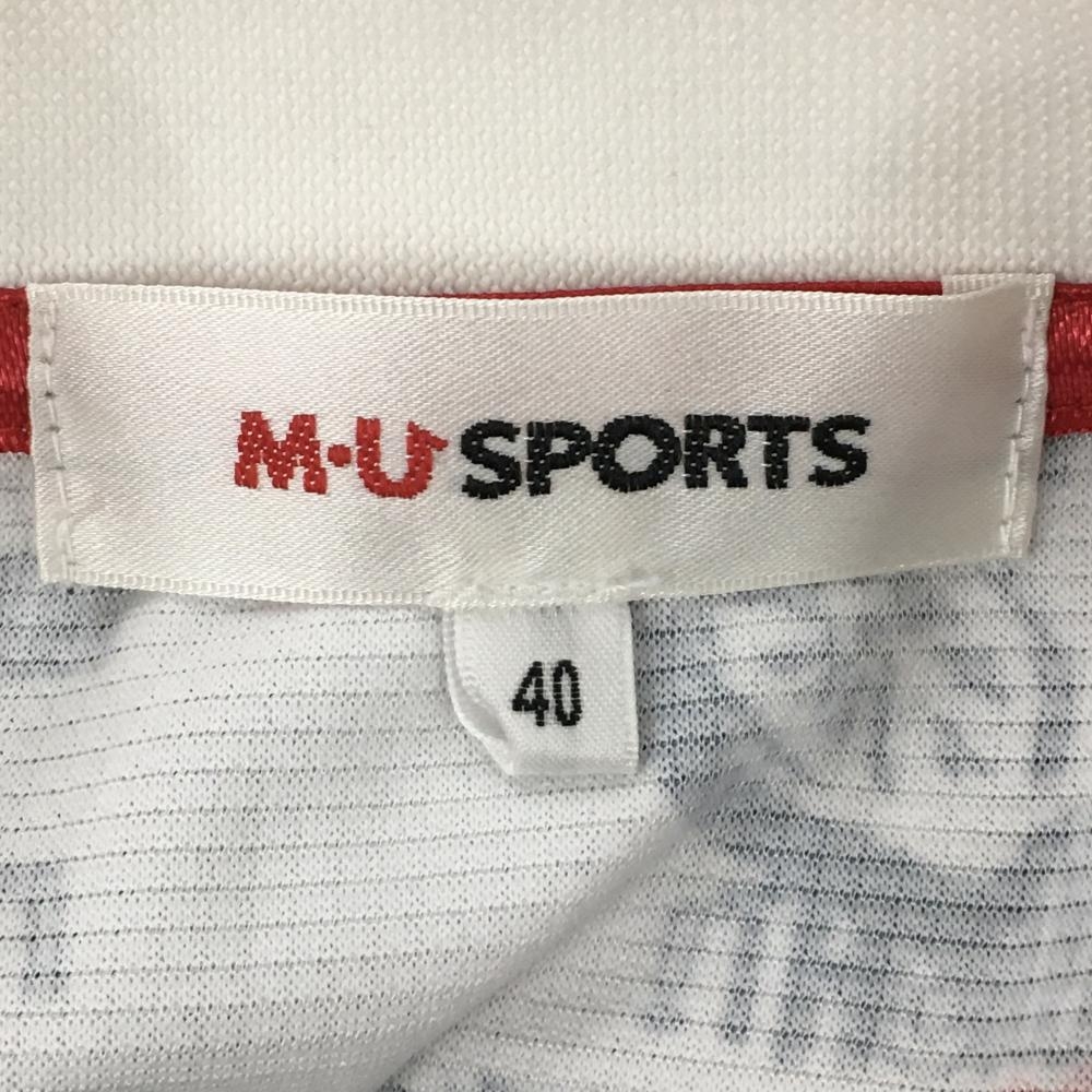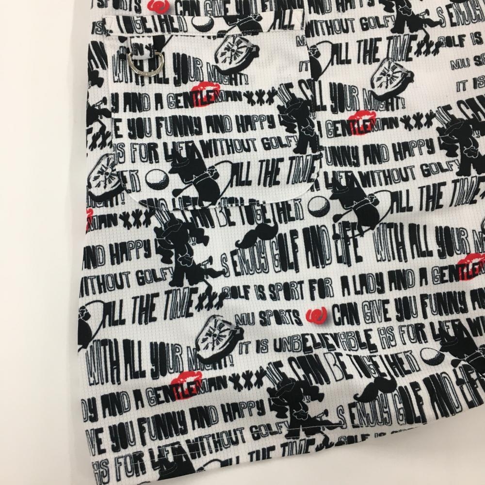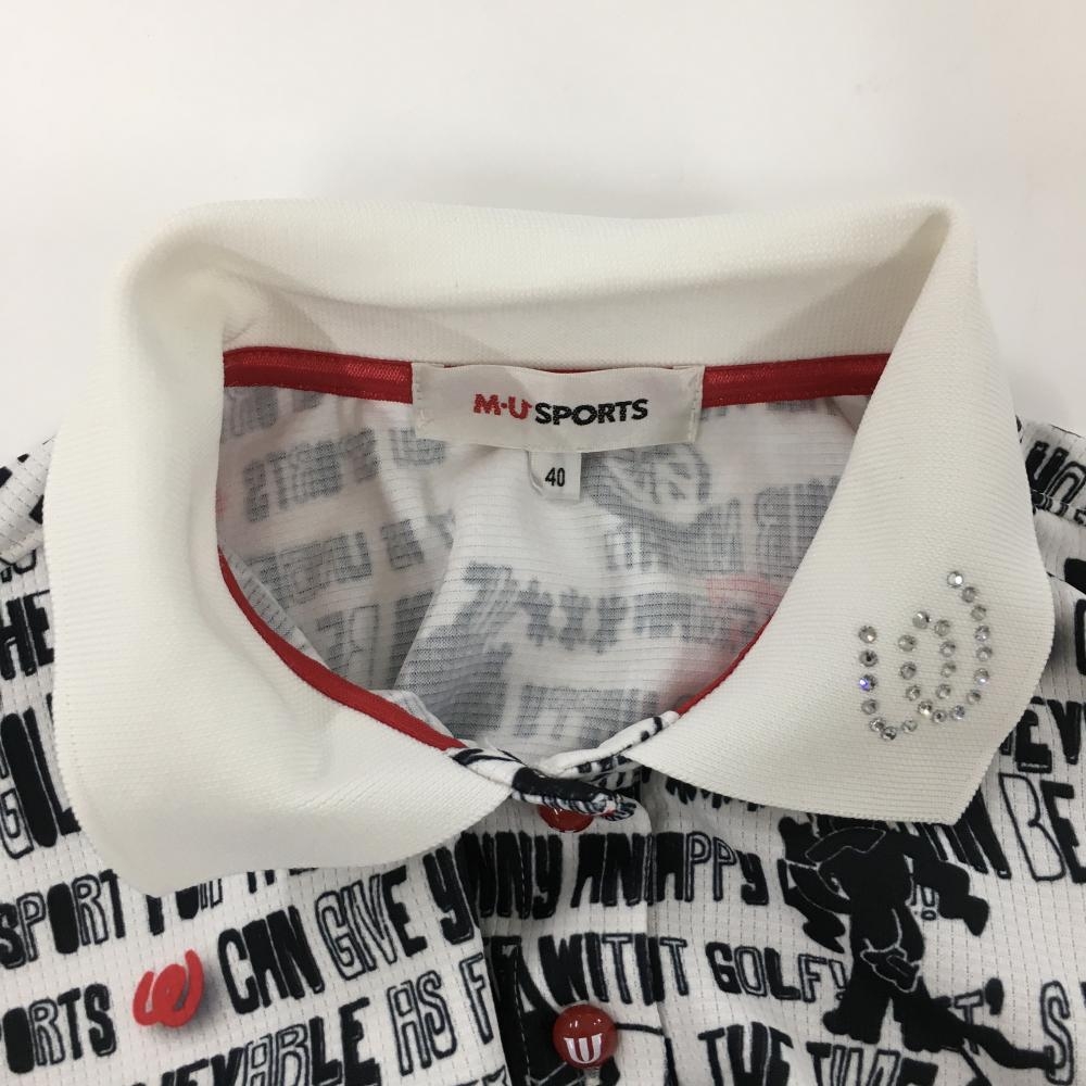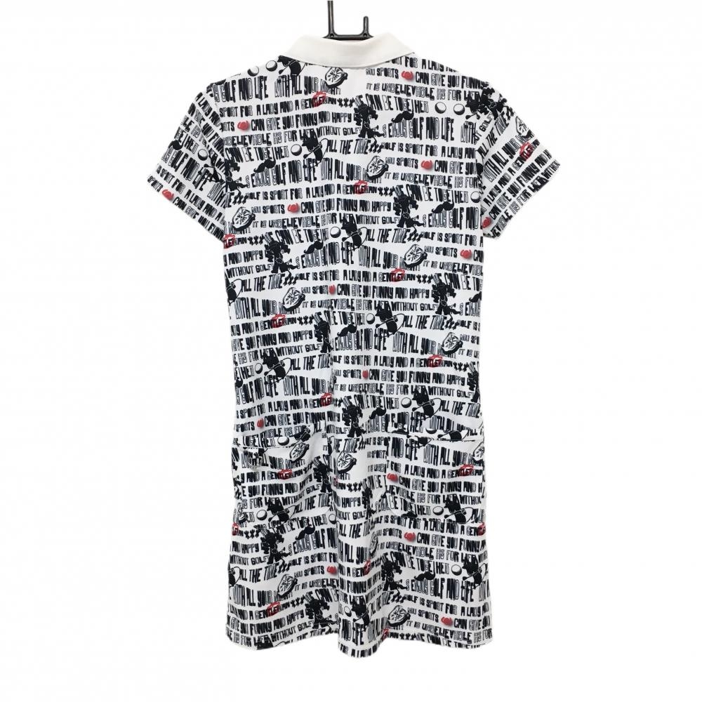 【超美品】MUスポーツ 半袖ポロワンピース 白×黒 ロゴ・ドッグ総柄 レディース 40(M) ゴルフウェア M・U SPORTS