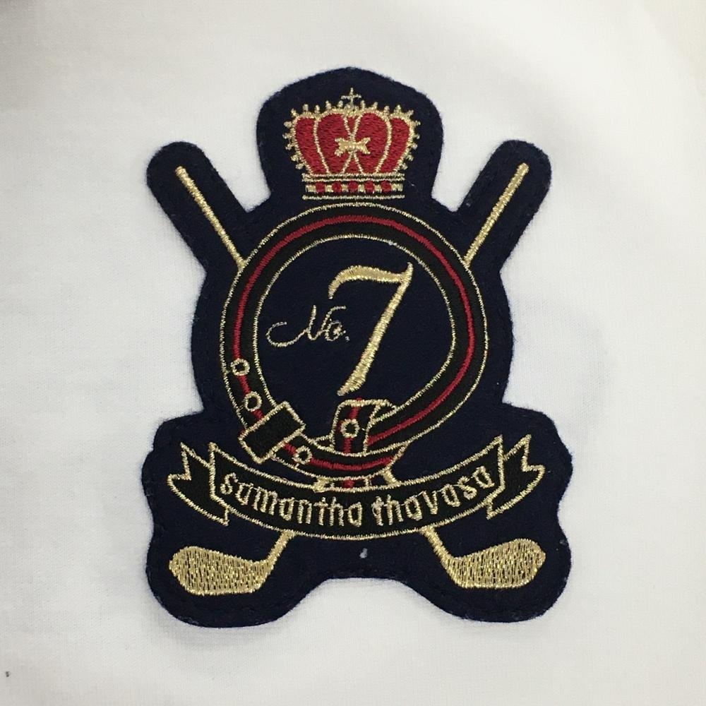【美品】サマンサタバサNo.7 半袖ポロシャツ 白 ワッペン レディース 38(M) ゴルフウェア Samantha Thavasa