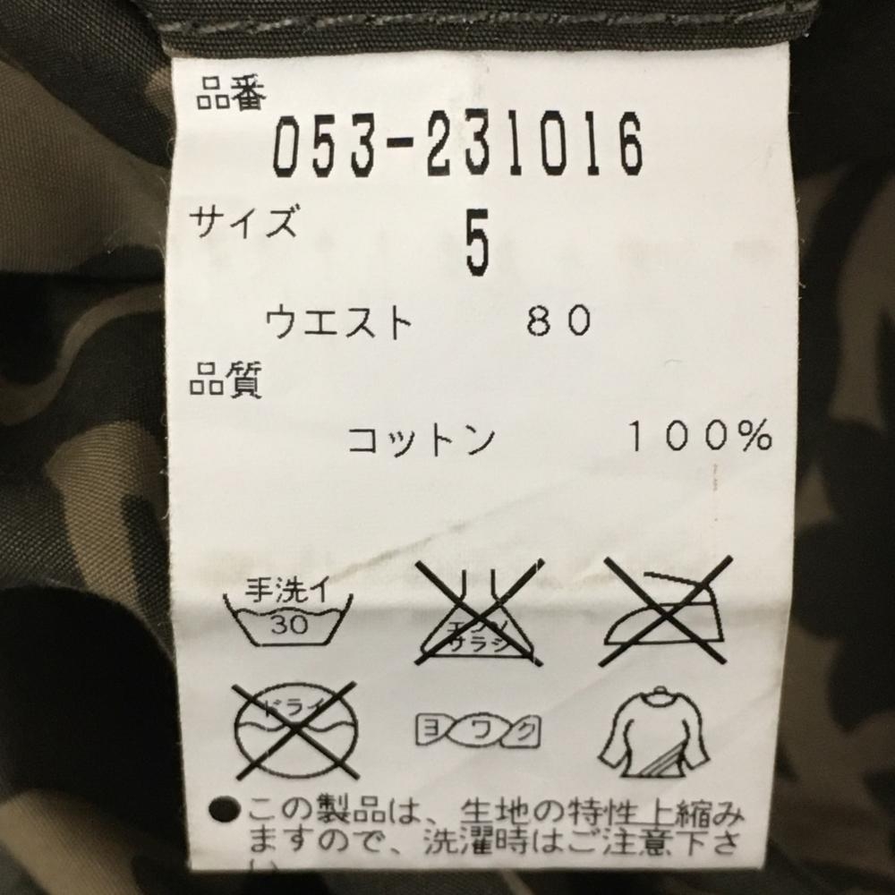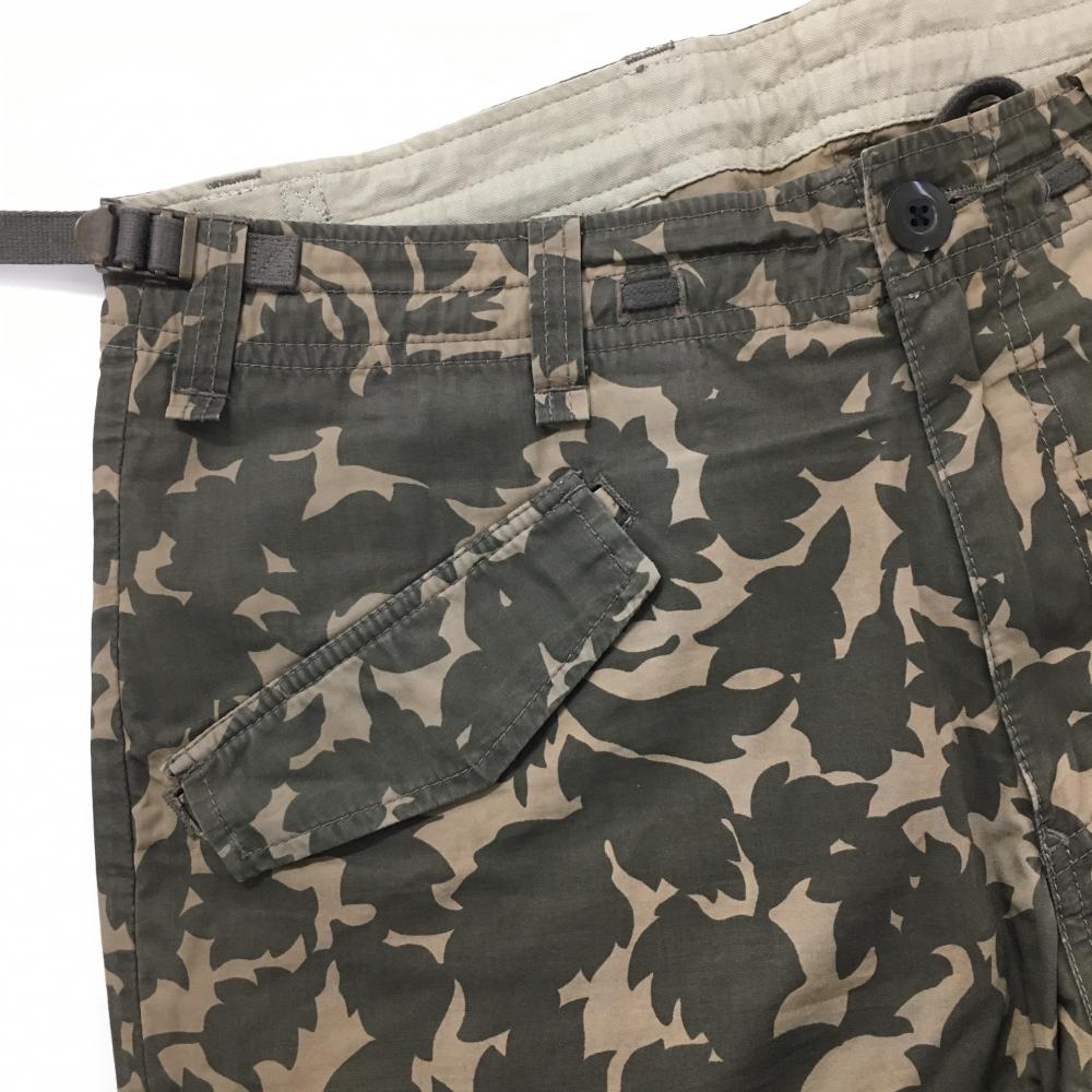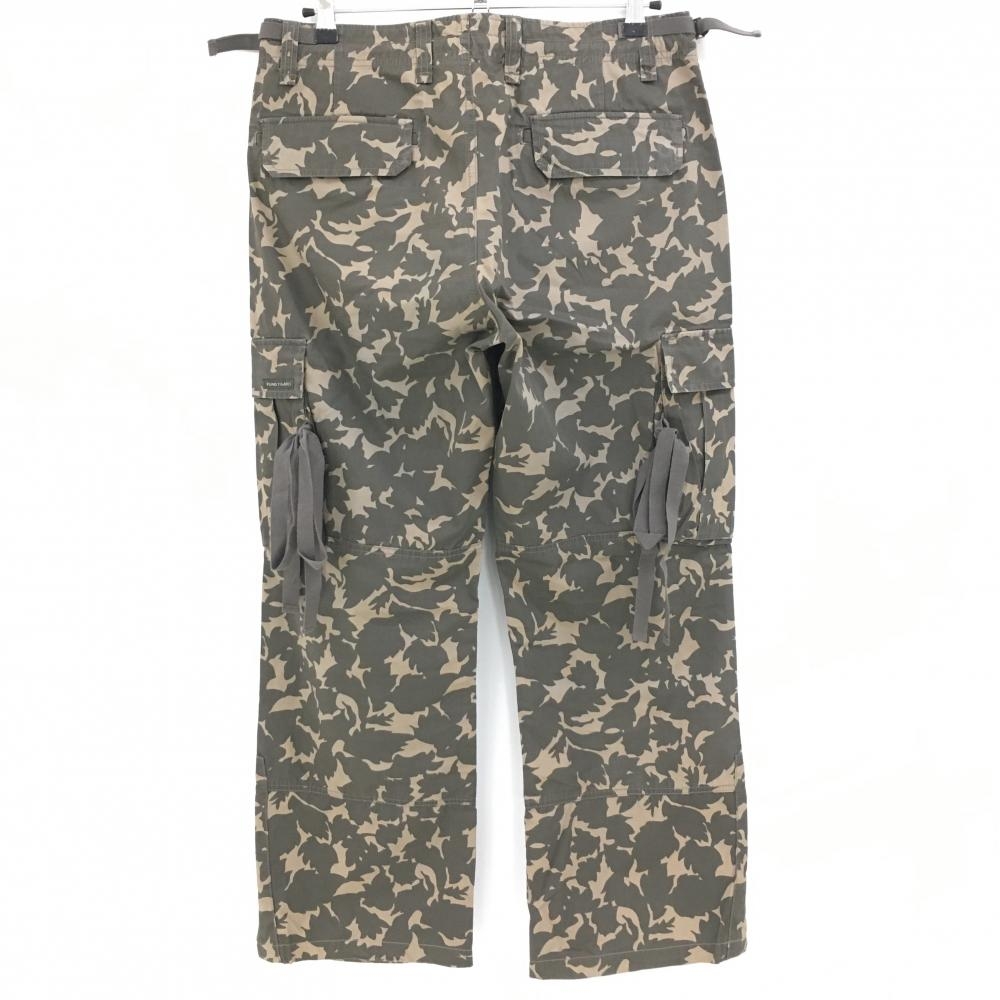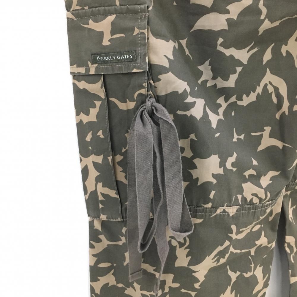 パーリーゲイツ カーゴパンツ カーキ×ベージュ リーフ柄 総柄 ウエスト調節紐 メンズ 5(L) ゴルフウェア PEARLY GATES