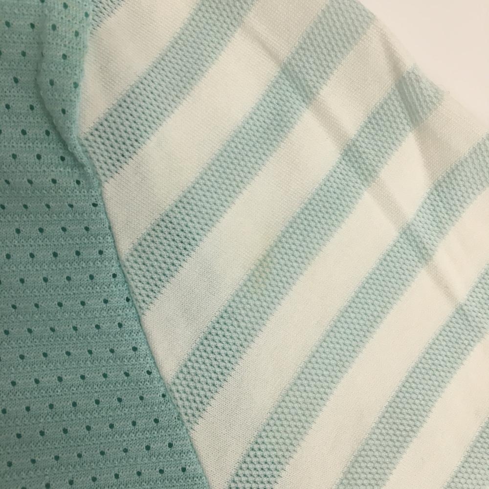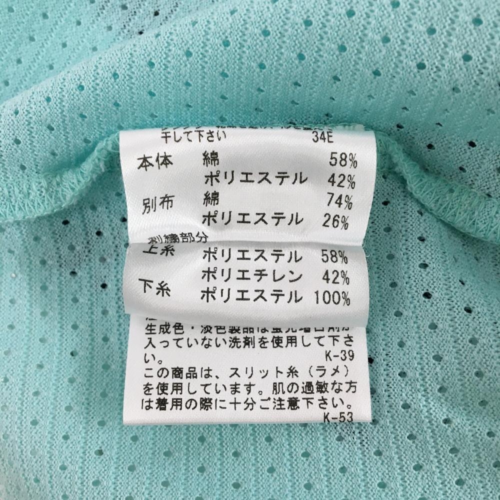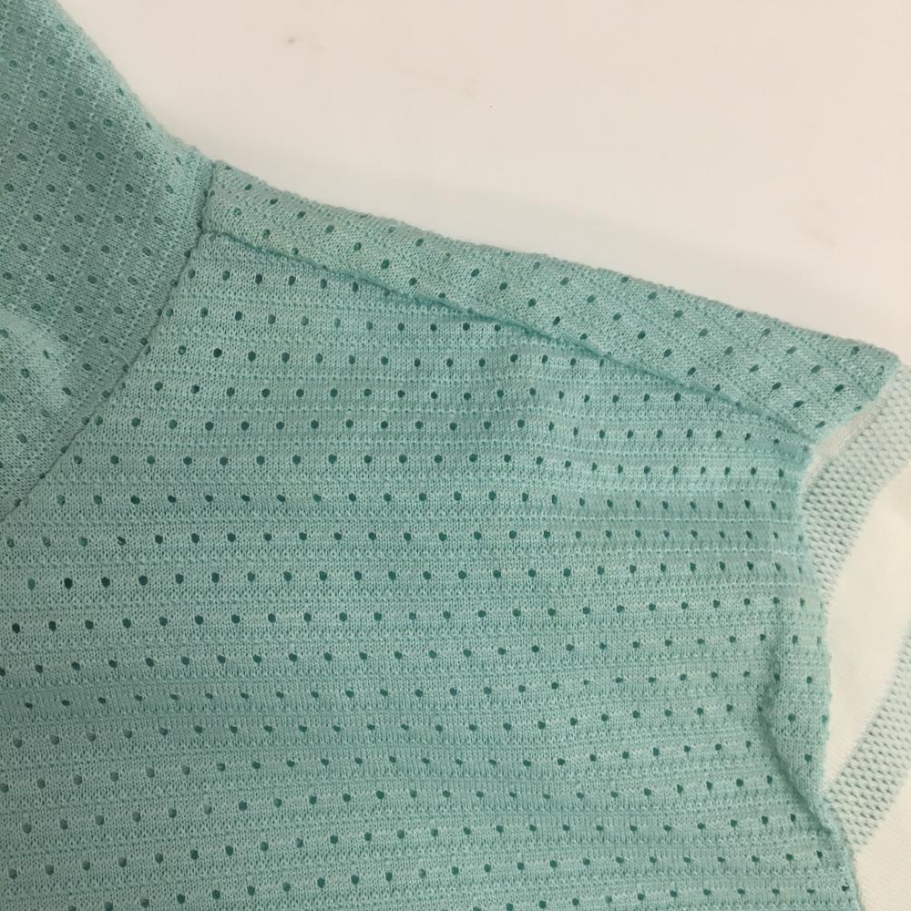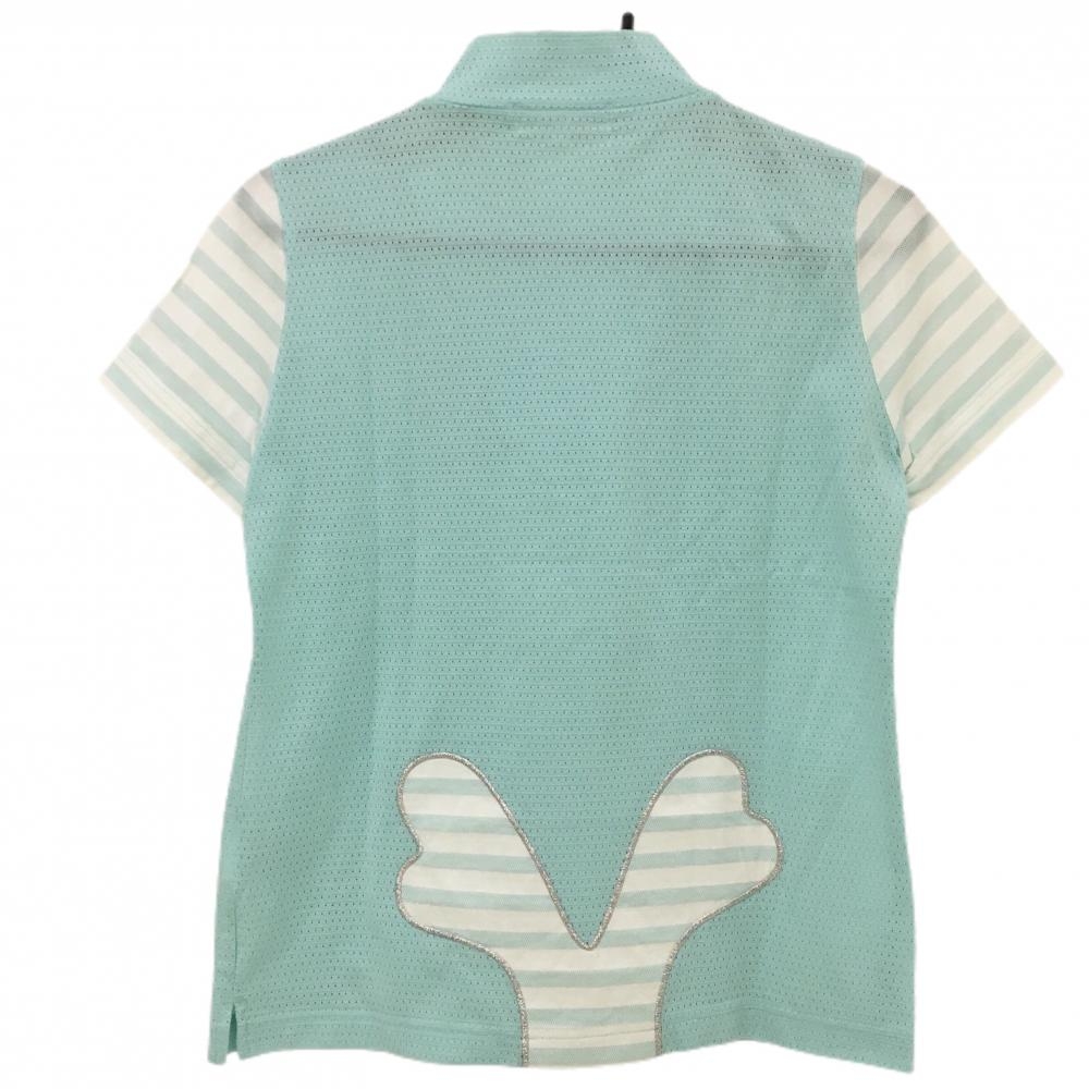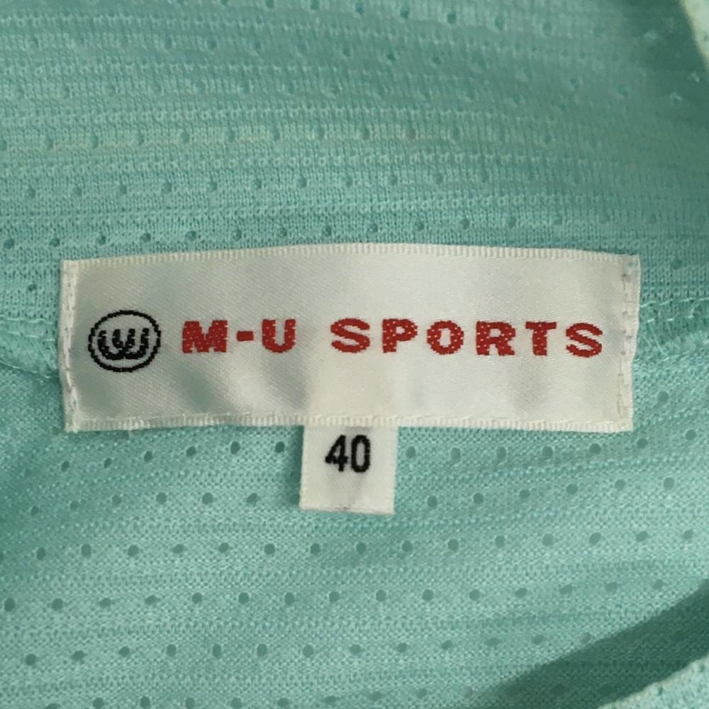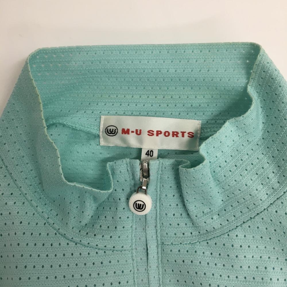 MUスポーツ 長袖ハイネックシャツ ライトグリーン×白 身頃メッシュ 袖ボーダー レディース 40(M) ゴルフウェア M・U SPORTS