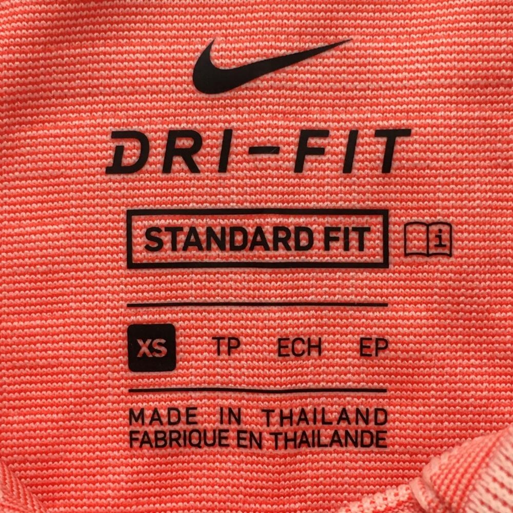 【超美品】ナイキ 半袖ポロシャツ オレンジ×白 一部ボーダー 格子 DRI-FIT レディース XS ゴルフウェア NIKE
