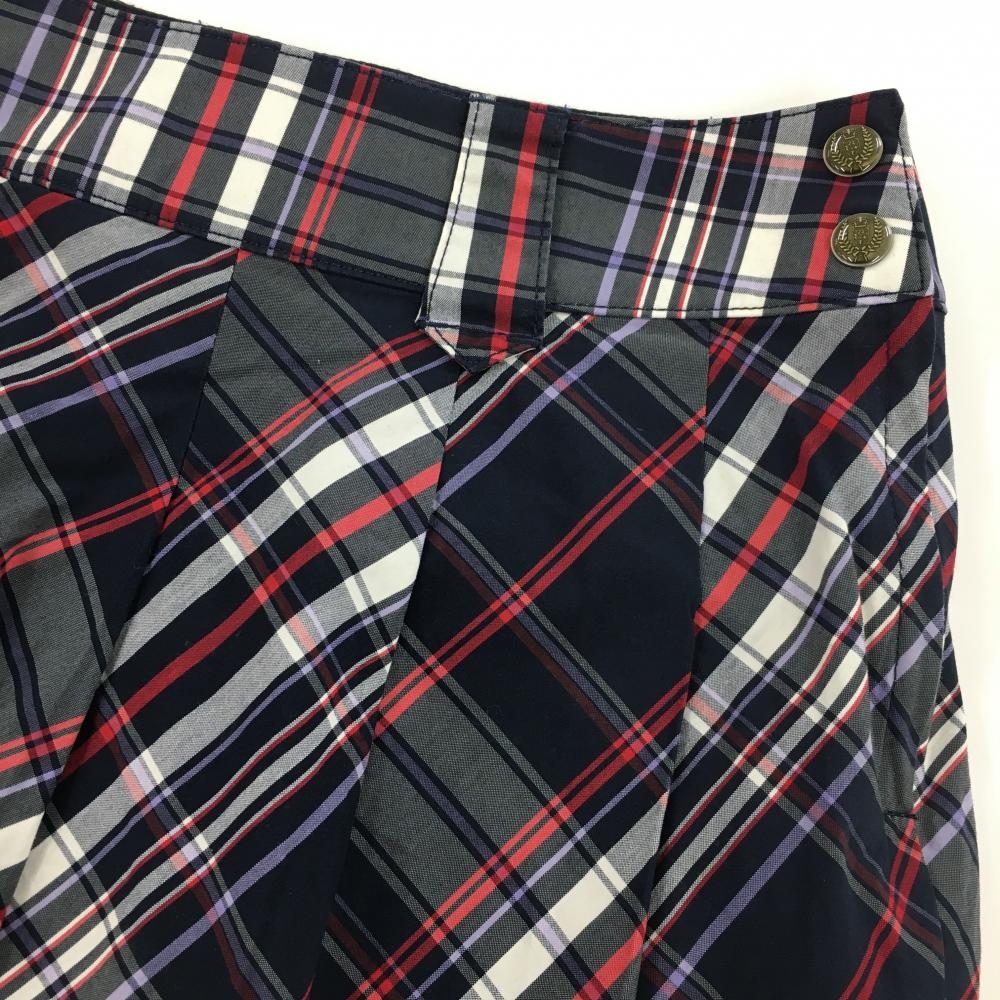 【超美品】23区スポーツ プリーツスカート ネイビー×白 チェック ストレッチ 内側インナーパンツ レディース M ゴルフウェア 23区