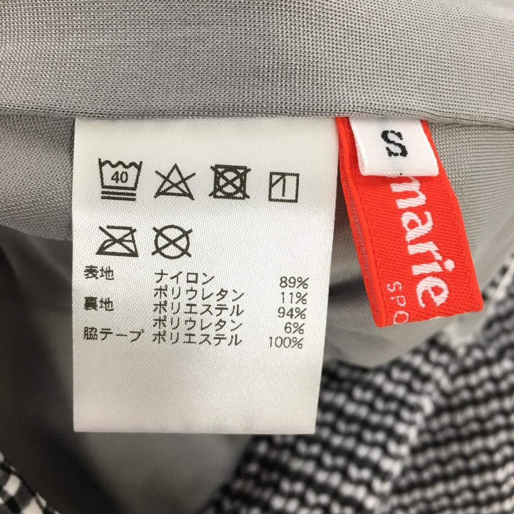 【美品】マリクレールスポール スカート 白×黒 総柄 サイドライン 裏地付き ウエストゴム 調節紐 レディース S ゴルフウェア marie claire