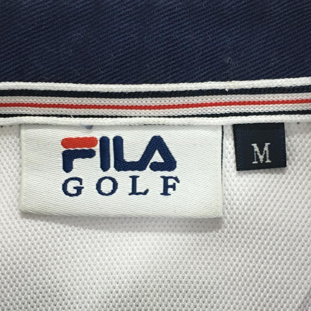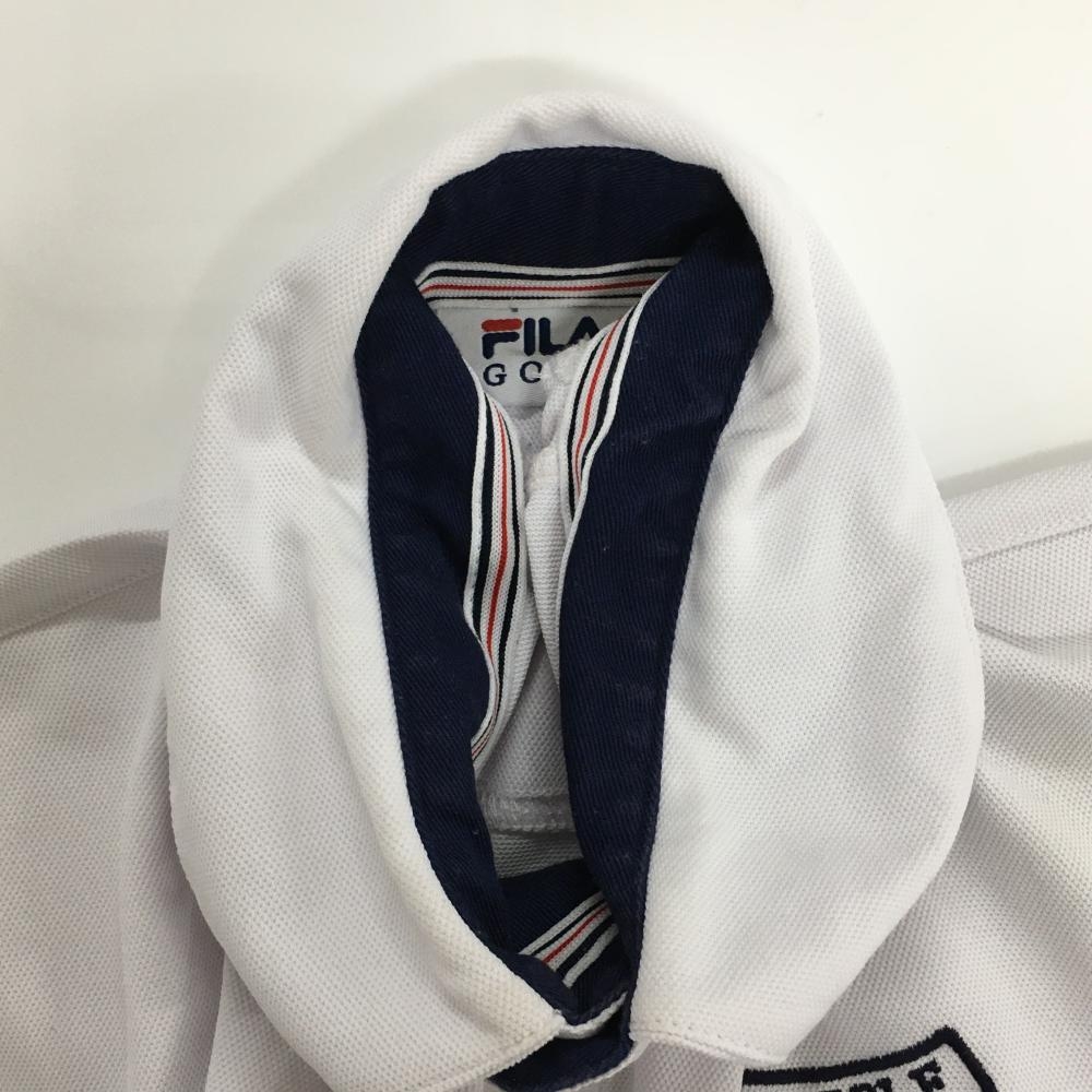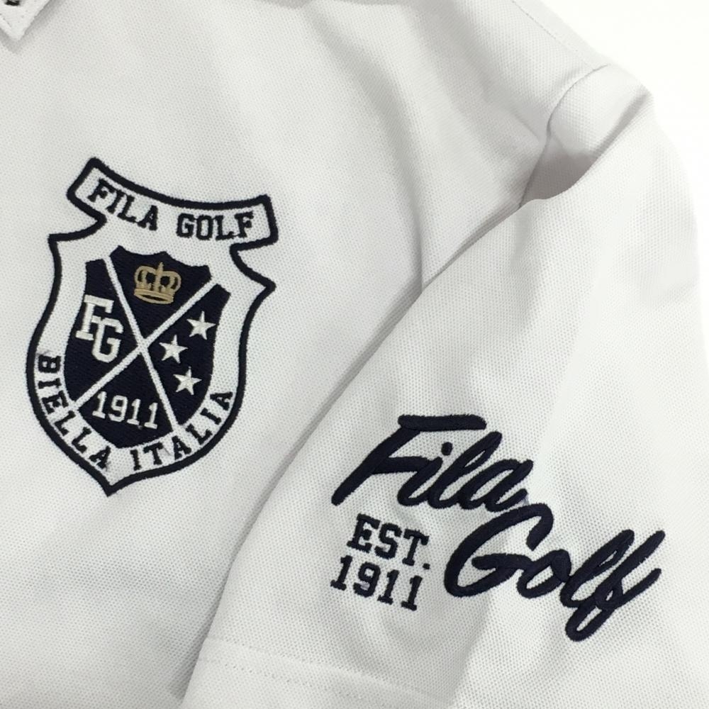 フィラゴルフ 半袖ポロシャツ 白×ネイビー 胸刺しゅう ボタンダウン メンズ M ゴルフウェア FILA GOLF