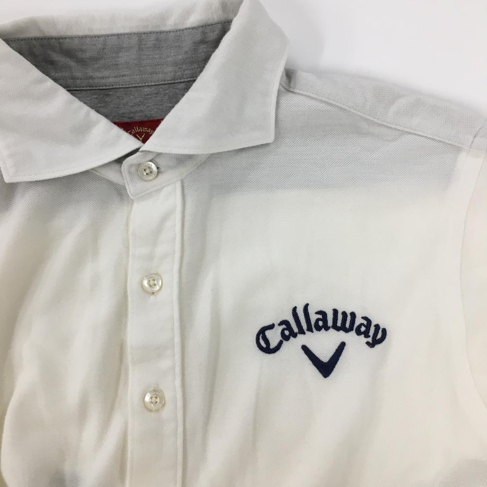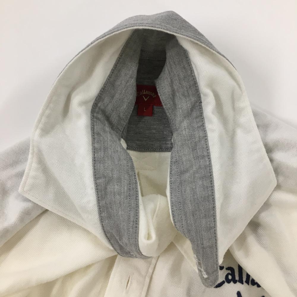 キャロウェイ レッドレーベル 長袖ポロシャツ 白×ネイビー 胸元ロゴ メンズ L ゴルフウェア Callaway