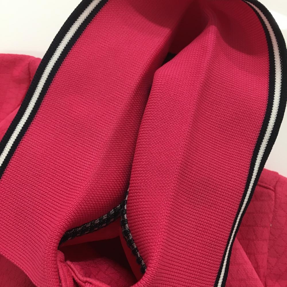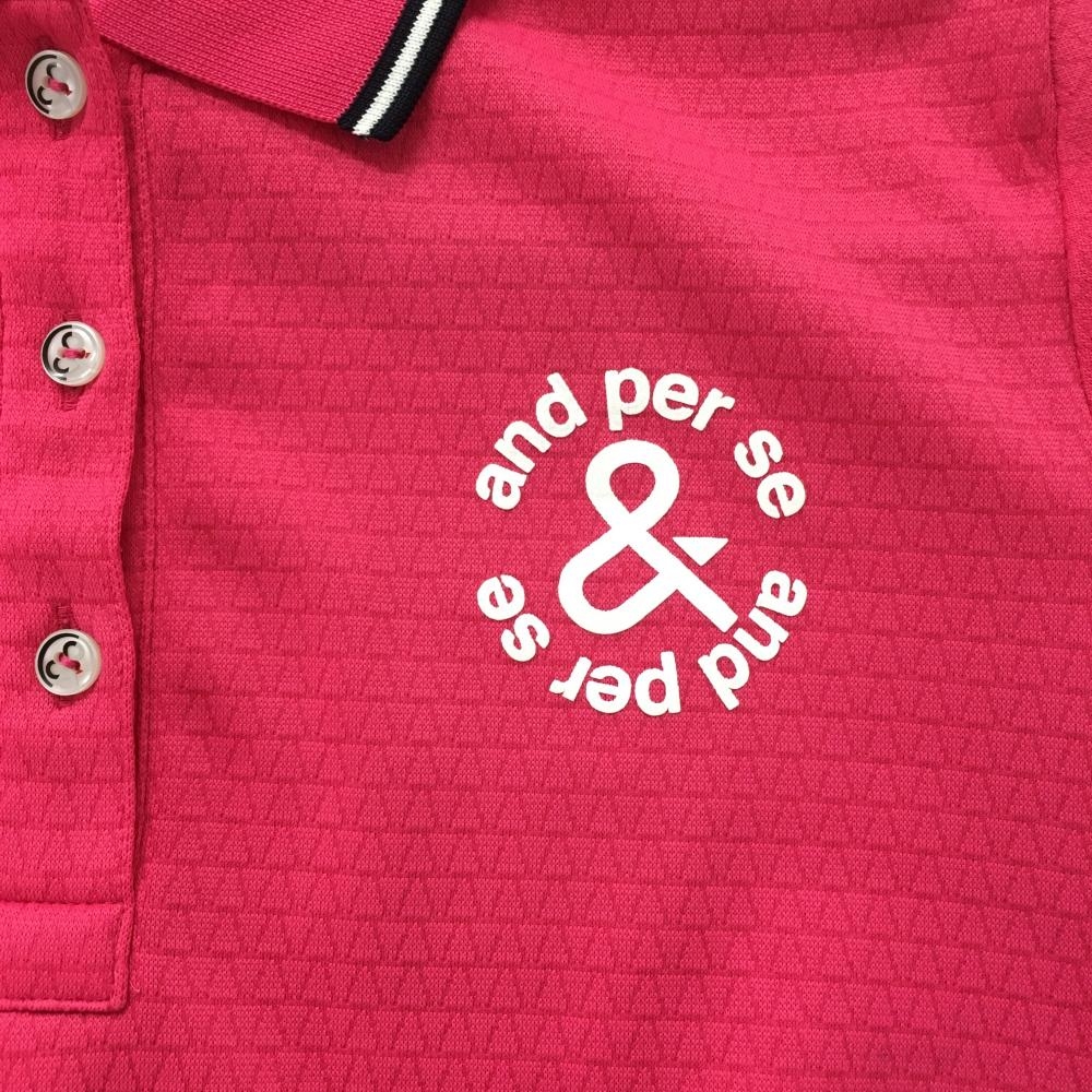 アンパスィ 半袖ポロシャツ ピンク 総柄織生地 胸ロゴプリント レディース L ゴルフウェア and per se