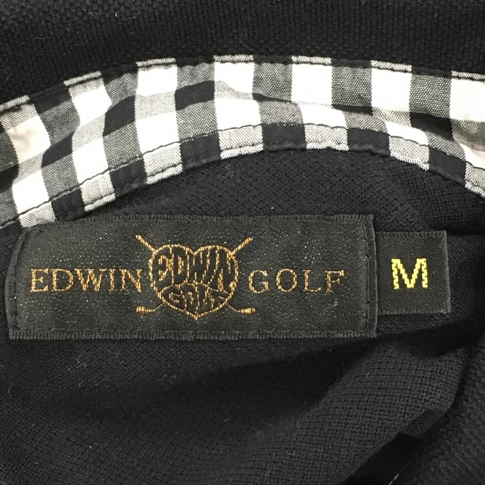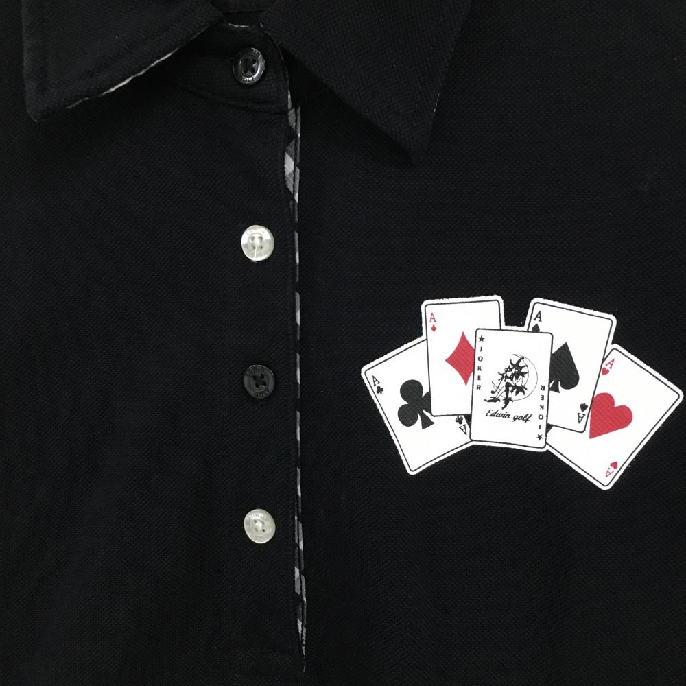 【美品】エドウィン 長袖ポロシャツ 黒×白 トランプ 一部内側チェック レディース M ゴルフウェア EDWIN GOLF
