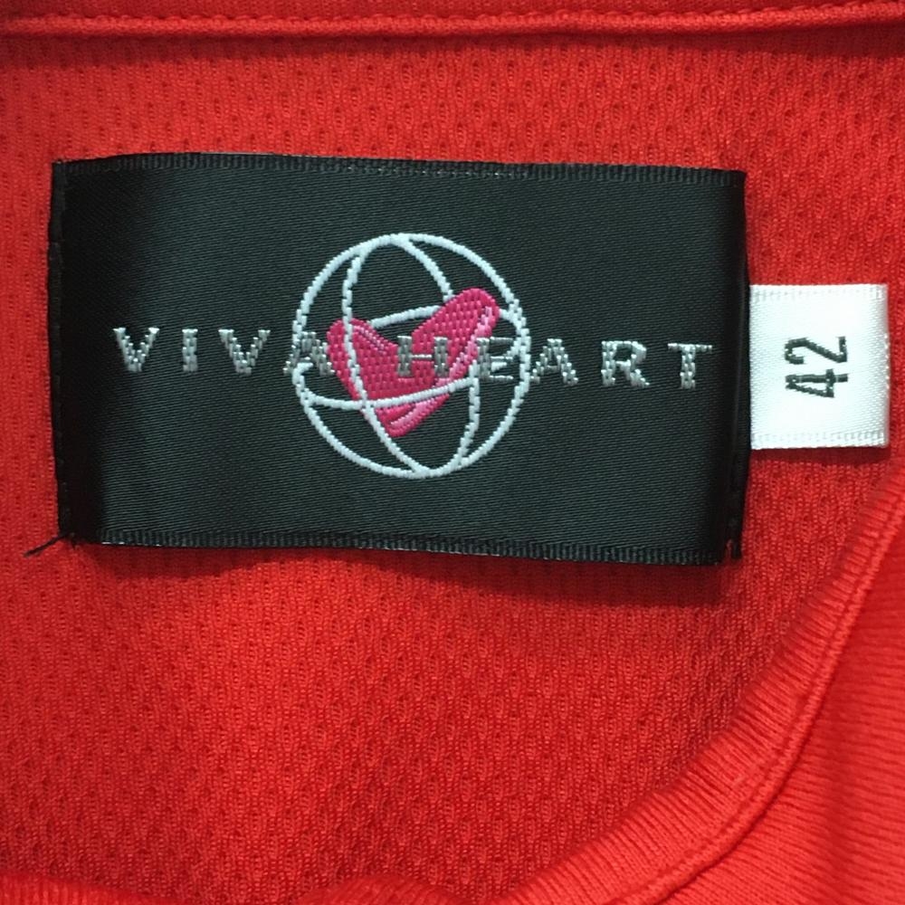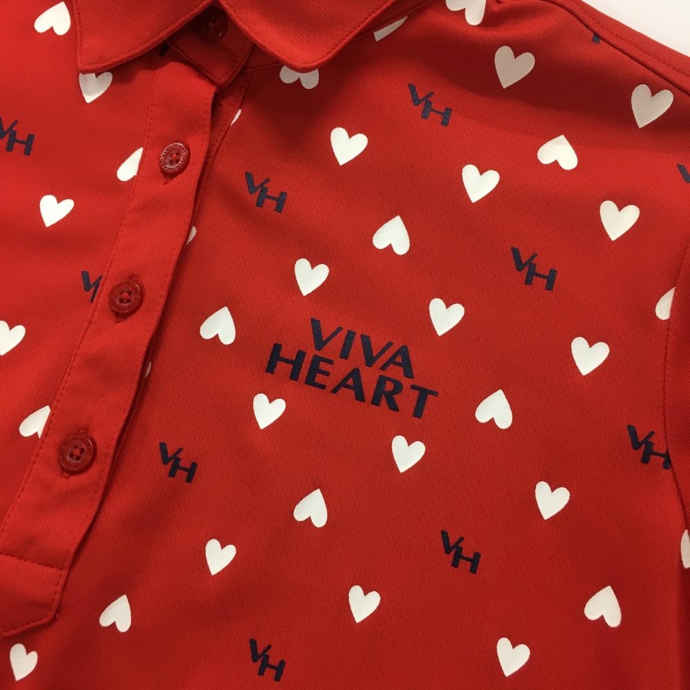 【美品】ビバハート 半袖ポロシャツ レッド×白 一部ハート柄 ロゴプリント レディース 42(L) ゴルフウェア VIVA HEART