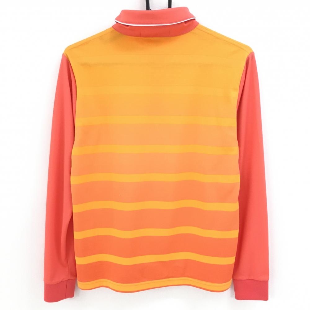 ルコックゴルフ 長袖ポロシャツ オレンジ系×サーモンピンク 身頃ボーダーグラデーション レディース L ゴルフウェア le coq sportif