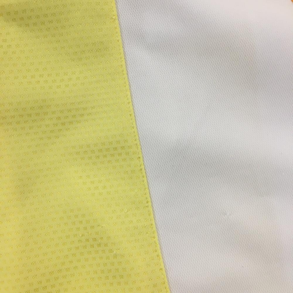 【美品】スリクソン 半袖ハイネックシャツ ライトイエロー×オレンジ×白 前身頃柄 織生地 ハーフジップ レディース L ゴルフウェア SRIXON