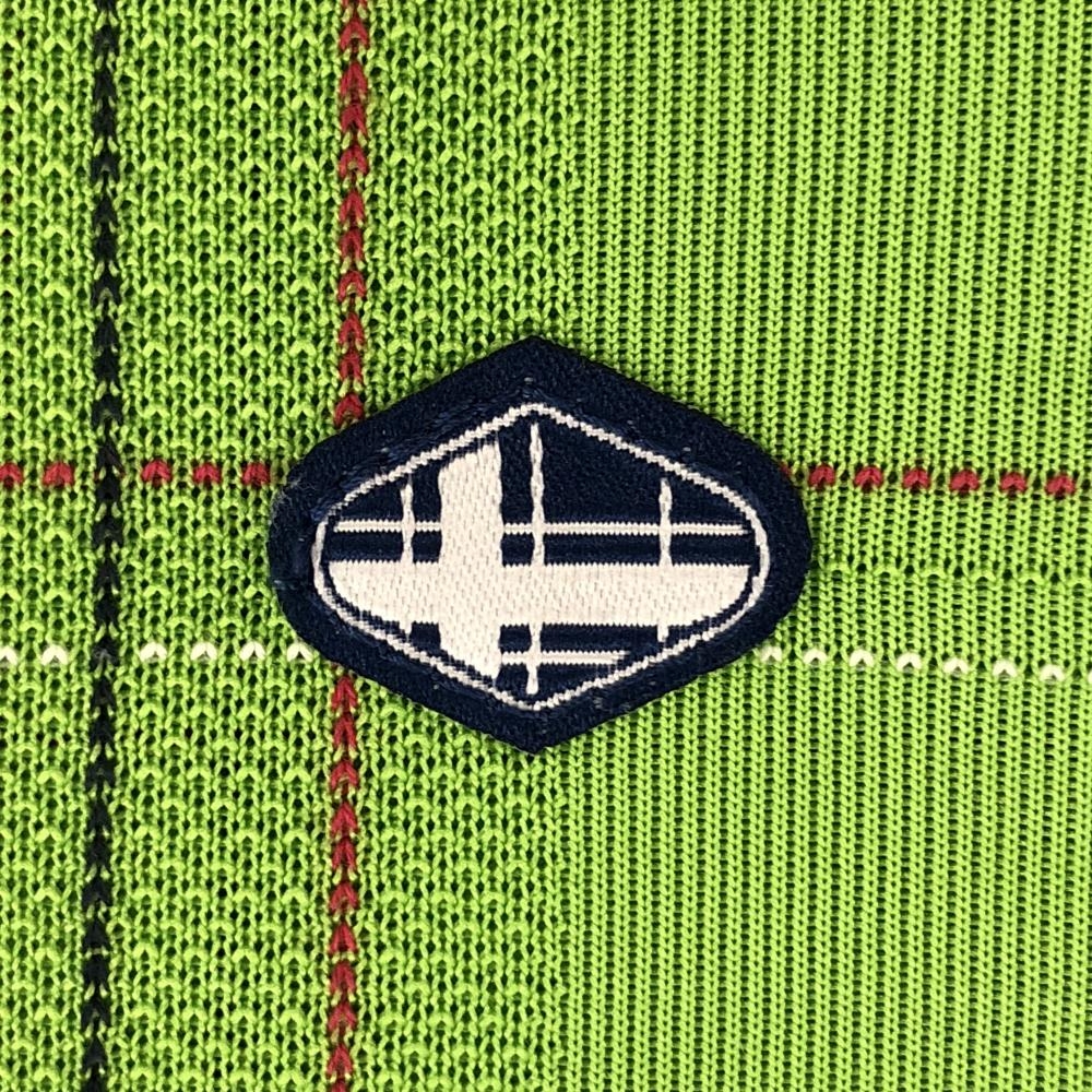 【超美品】フィドラ 半袖シャツ ライトグリーン×レッド チェック ボタンダウン メンズ L/G ゴルフウェア FIDRA