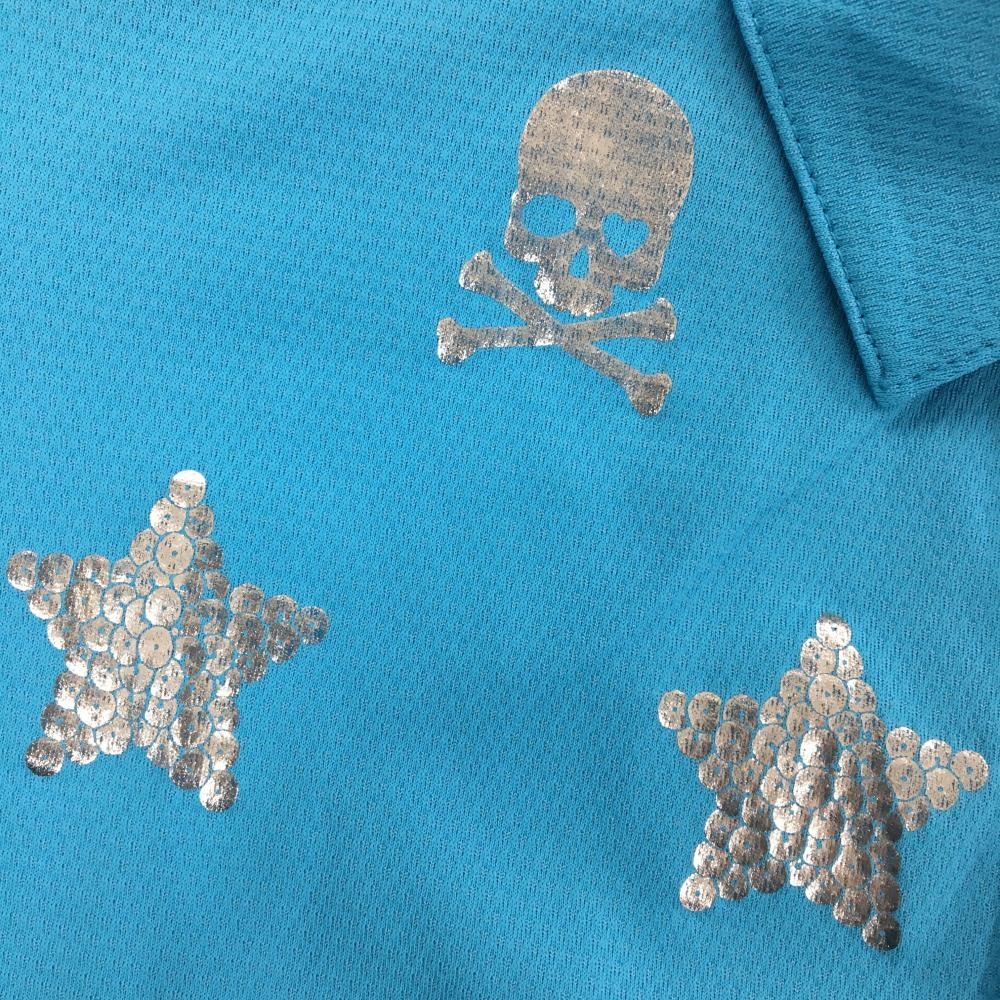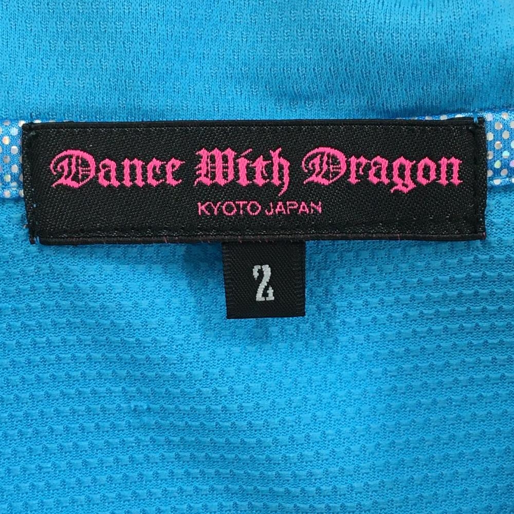 【超美品】ダンスウィズドラゴン 半袖ポロシャツ ライトブルー×シルバー レディース 2(M) ゴルフウェア Dance With Dragon