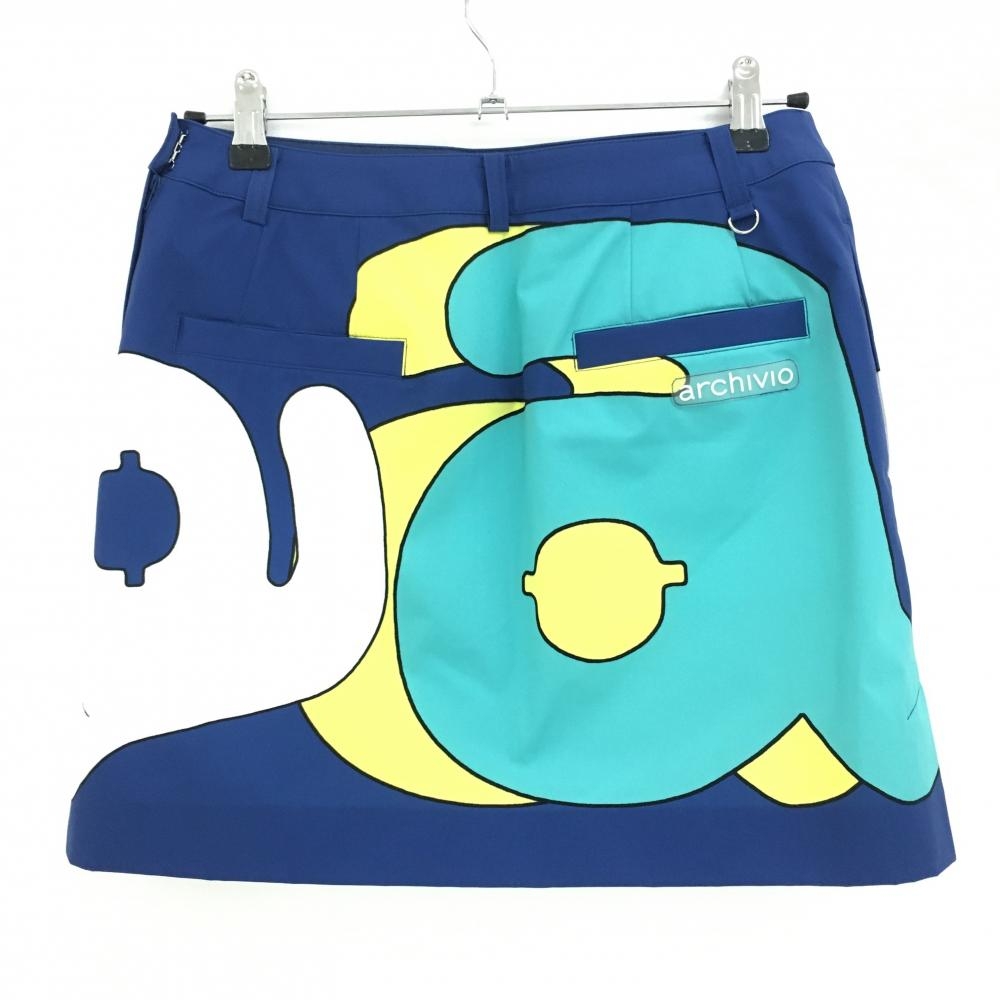 【超美品】アルチビオ スカート ブルー×ライトグリーン ビッグロゴ 裏地付 レディース 40(L) ゴルフウェア archivio