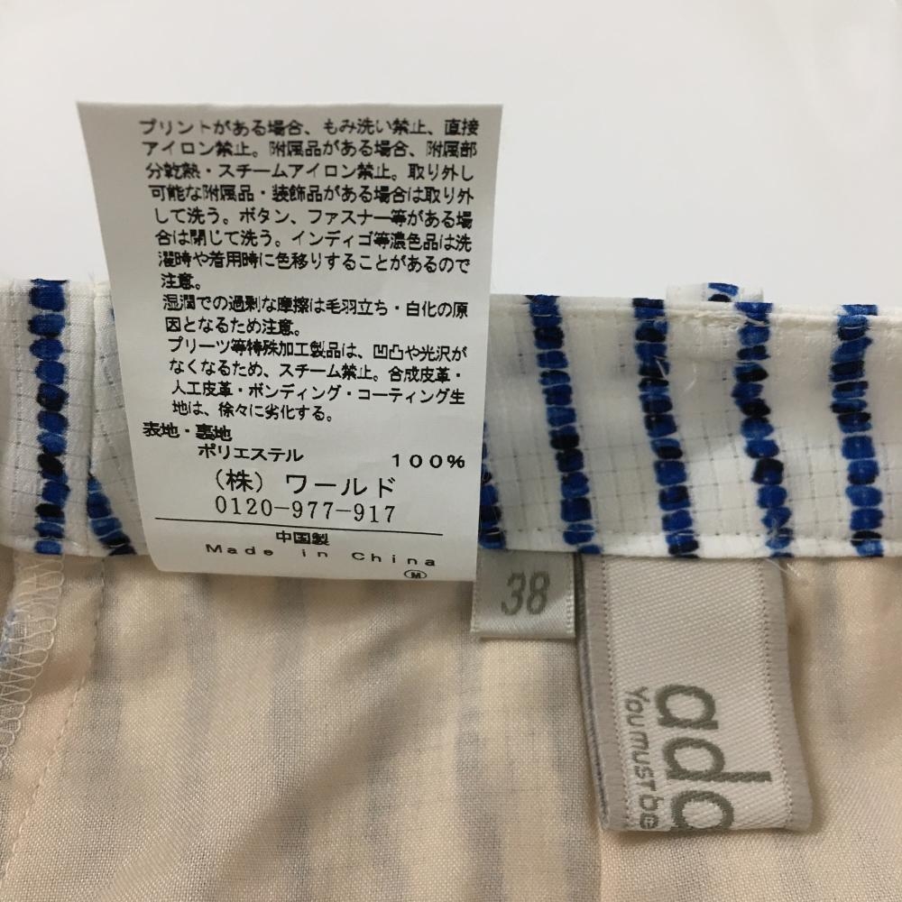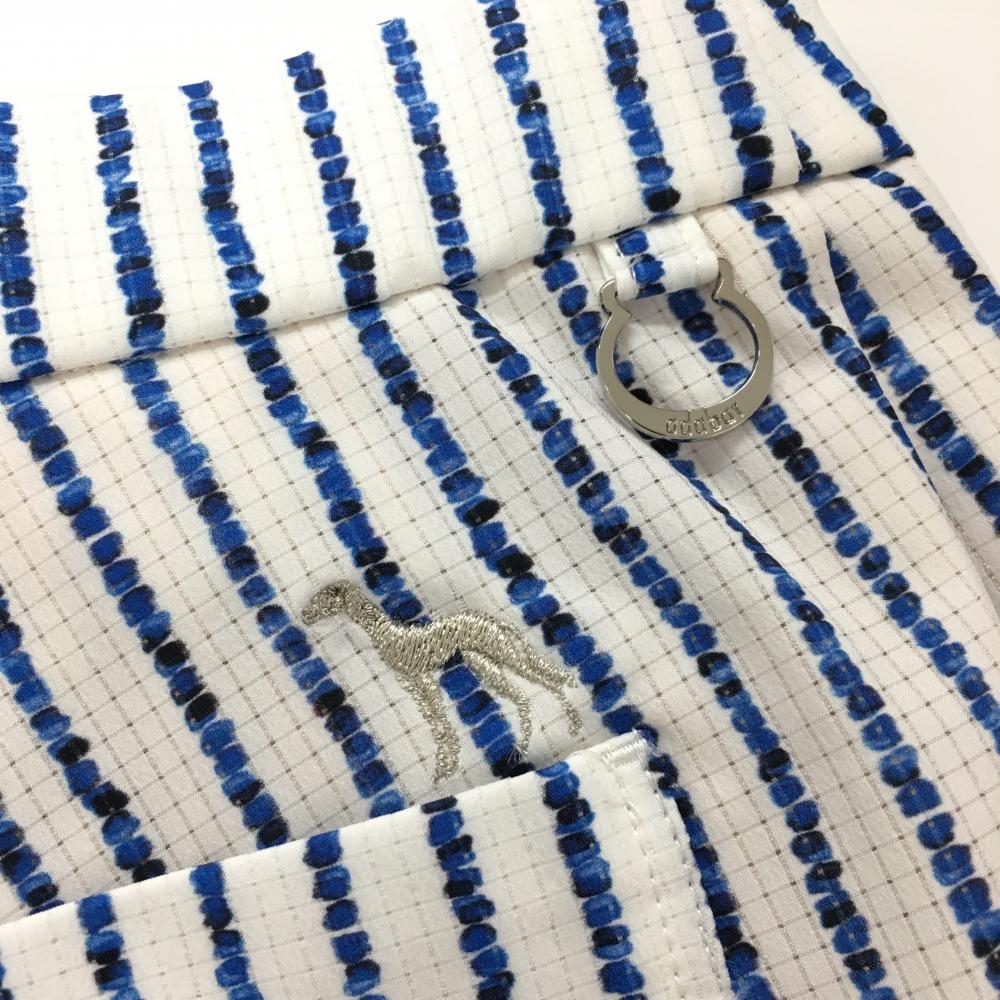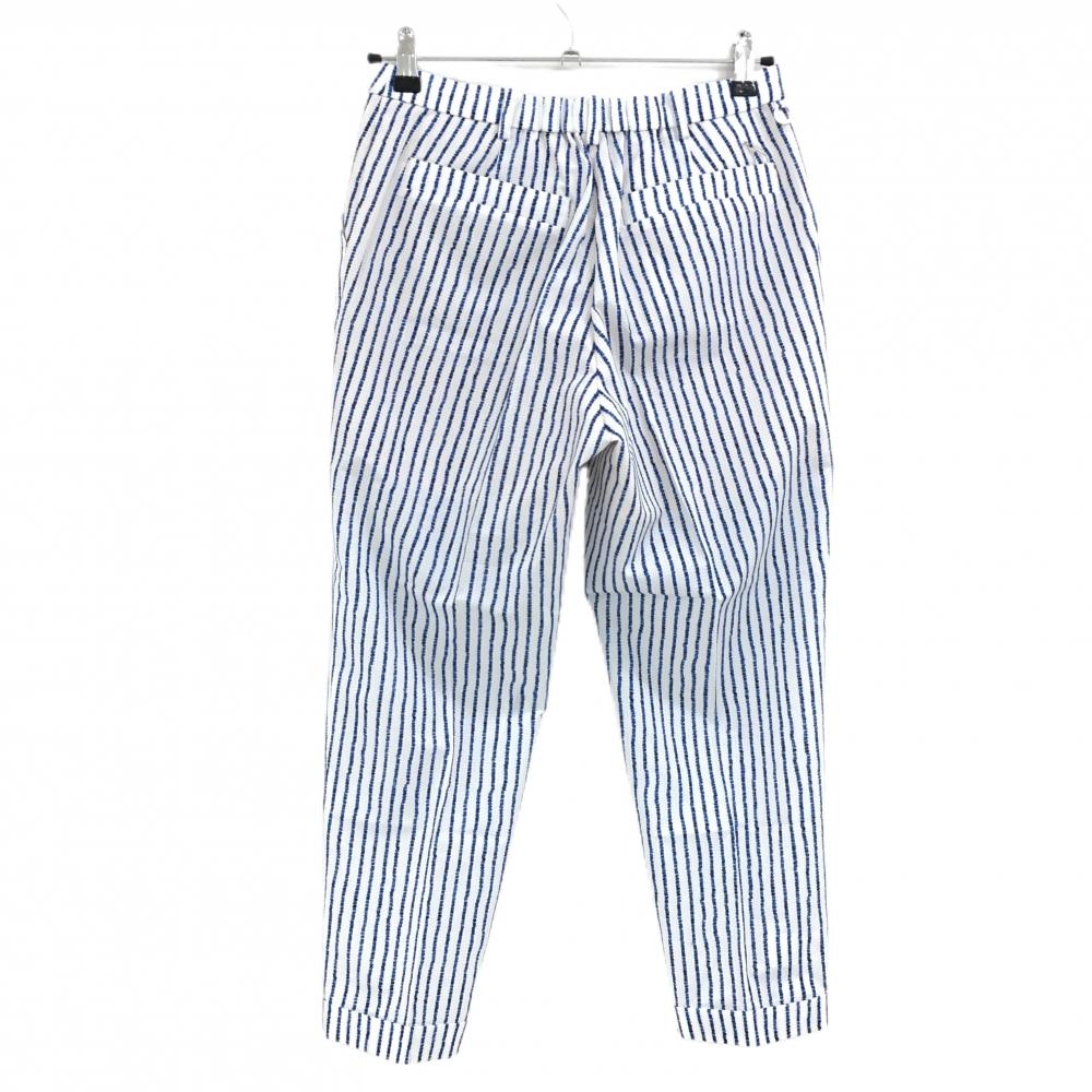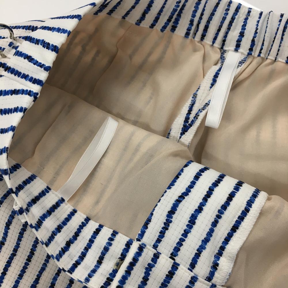 【超美品】アダバット パンツ 白×ブルー ストライプ メッシュ調生地 裏地付 レディース 38(M) ゴルフウェア adabat